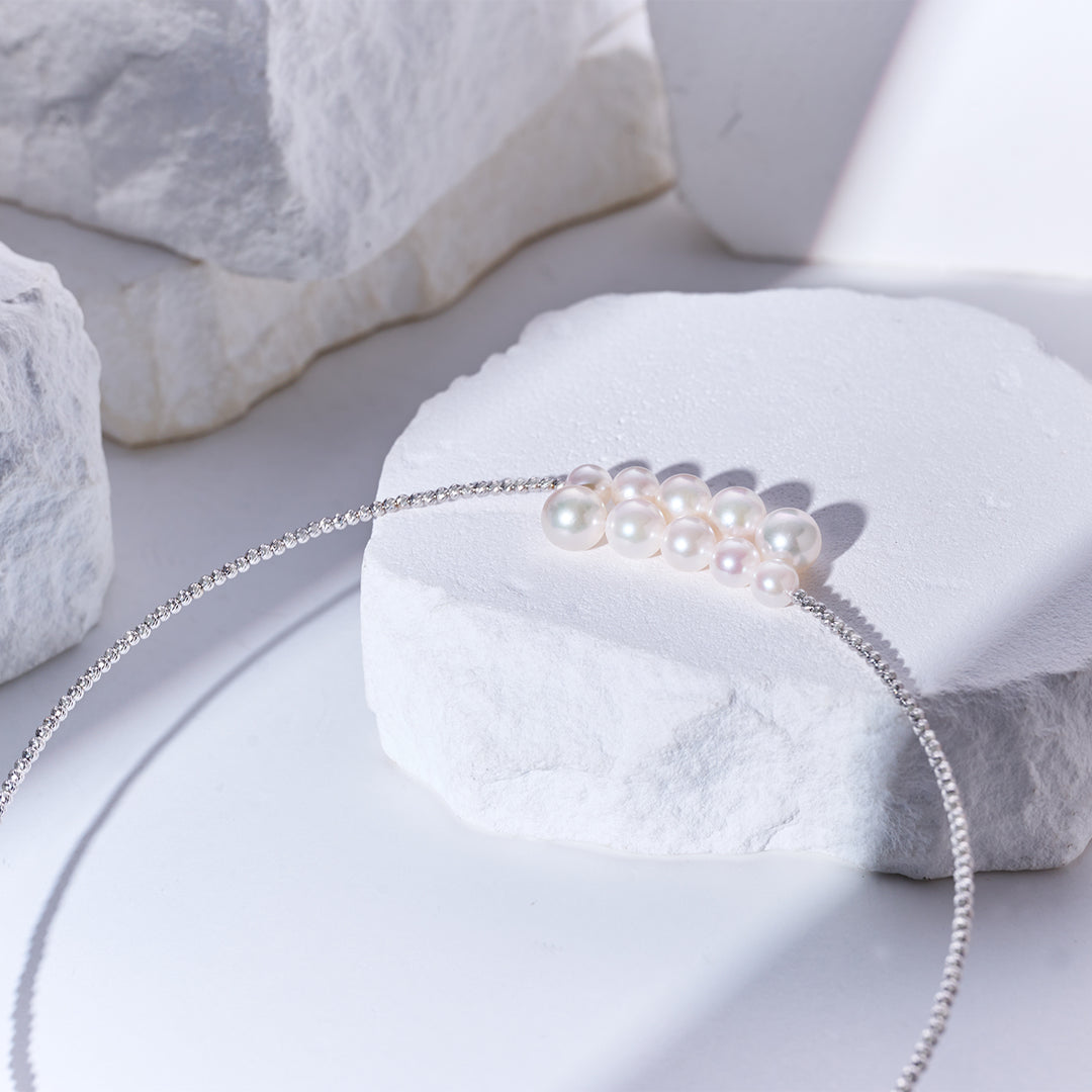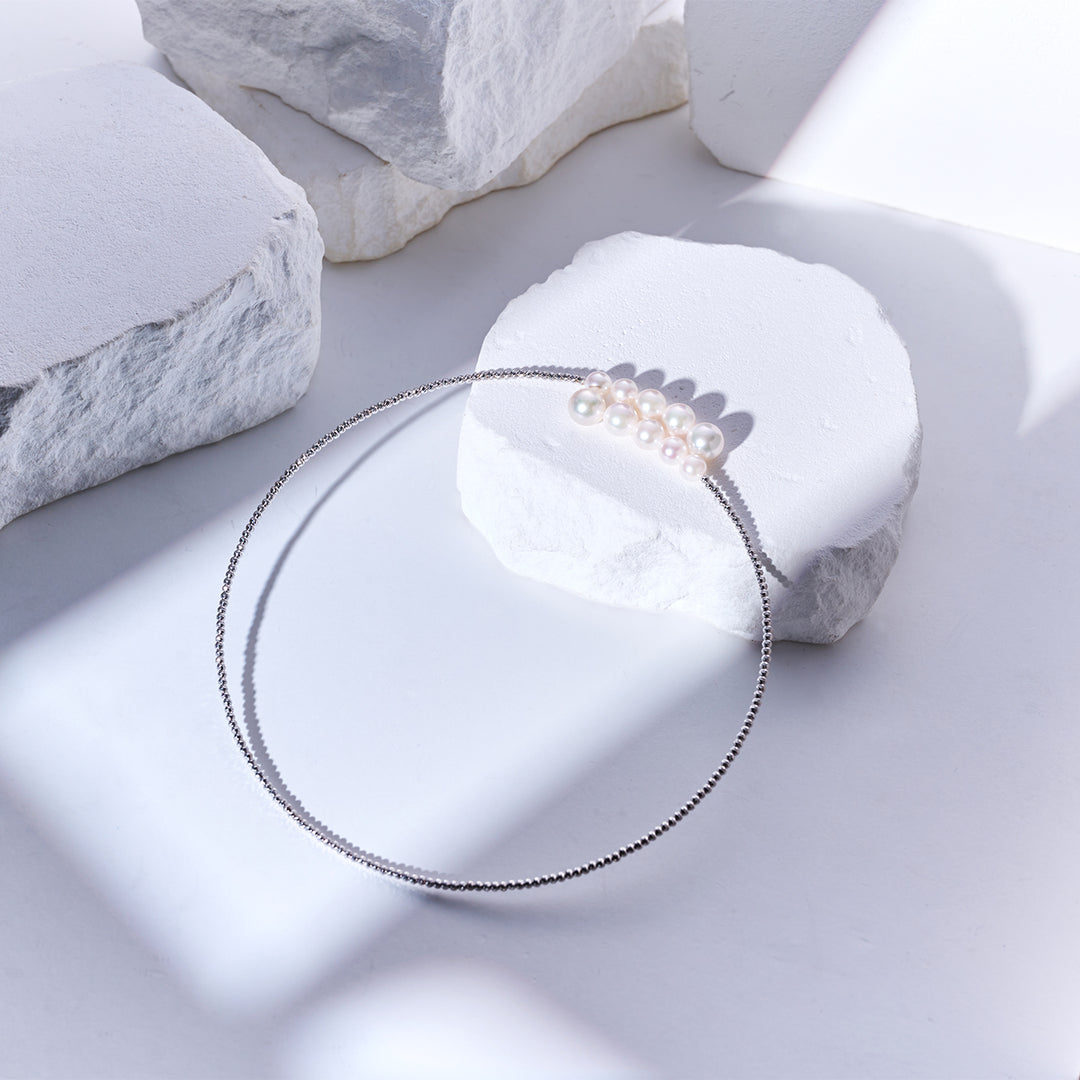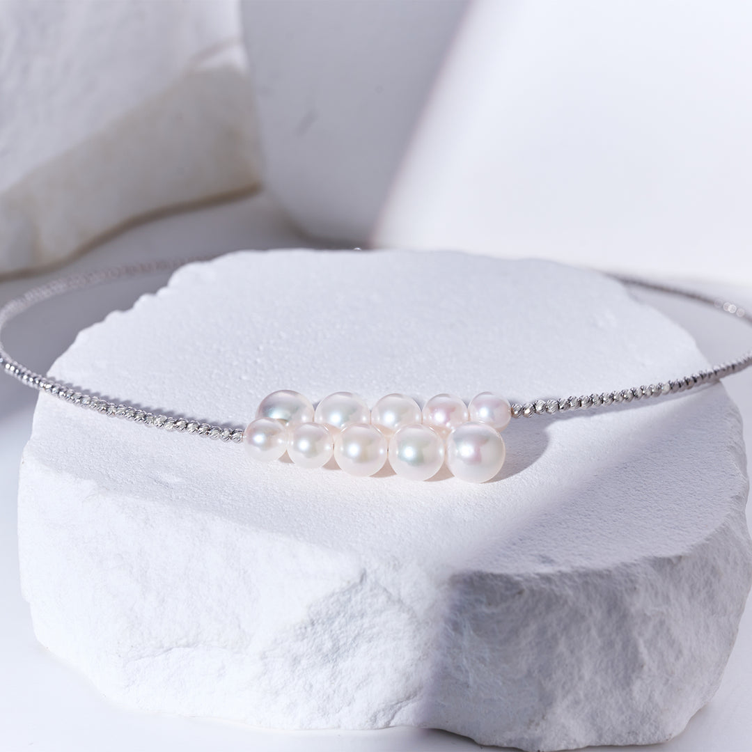 日本産の輝くアコヤ真珠をあしらったこの作品は、日常のスタイルに優雅な輝きを加えます。精巧にカットされた18Kゴールドのビーズが動くたびに光を捉え、控えめで魅力的なきらめきを放ちます。