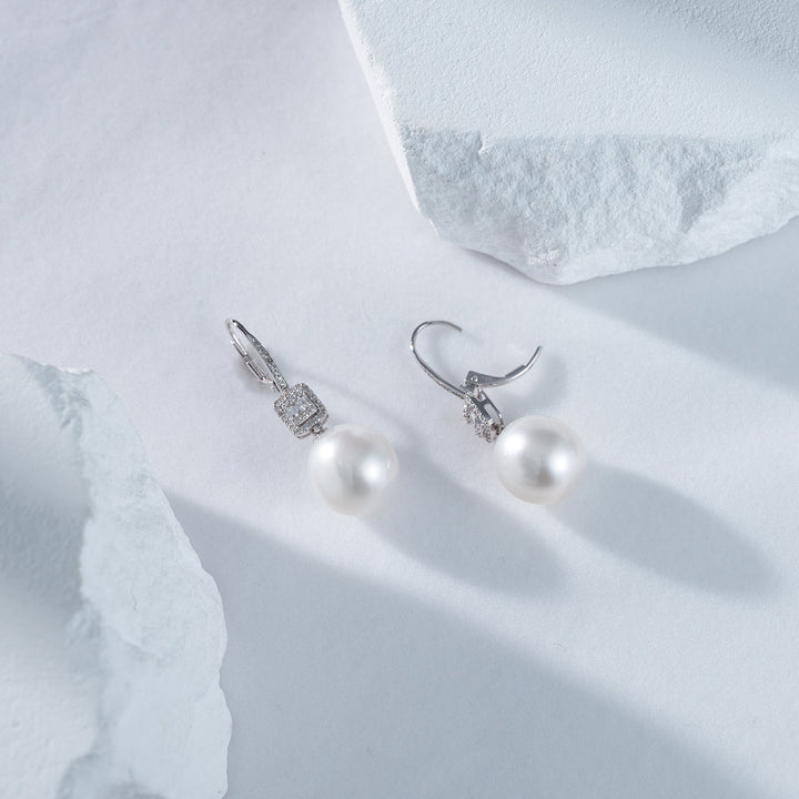 18k Solid Gold Diamond Australian White Pearl Earring KE00147 - PEARLY LUSTRE