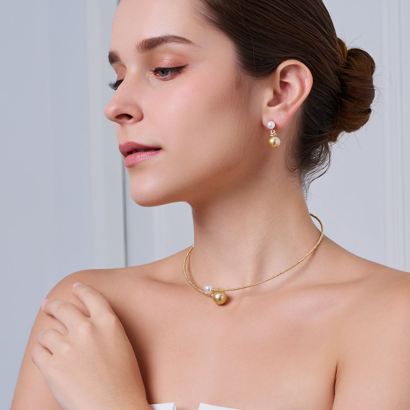 純白のアコヤ真珠とゴールドの南洋真珠の贅沢な魅力の魅惑的な組み合わせで、あなたのスタイルを高めましょう。当社の独自にデザインされたジュエリーは、ファッションの真髄をとらえるだけでなく、あなたのルックスに洗練さと個性を加えます。
