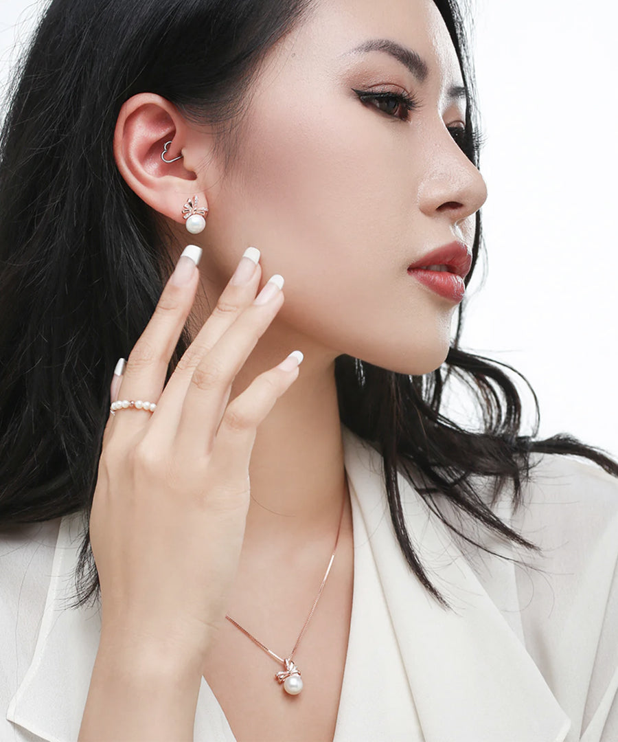 真珠はカキやムール貝によって自然に作られます。適切に手入れすれば、一生(またはそれ以上)輝きや色の濃さを失わずに持ちます。着用後は、Pearly Lustreのシルバー磨き布で真珠のジュエリーを拭いてください。汗や皮脂は酸性であり、真珠の輝きに影響を与える可能性があります。