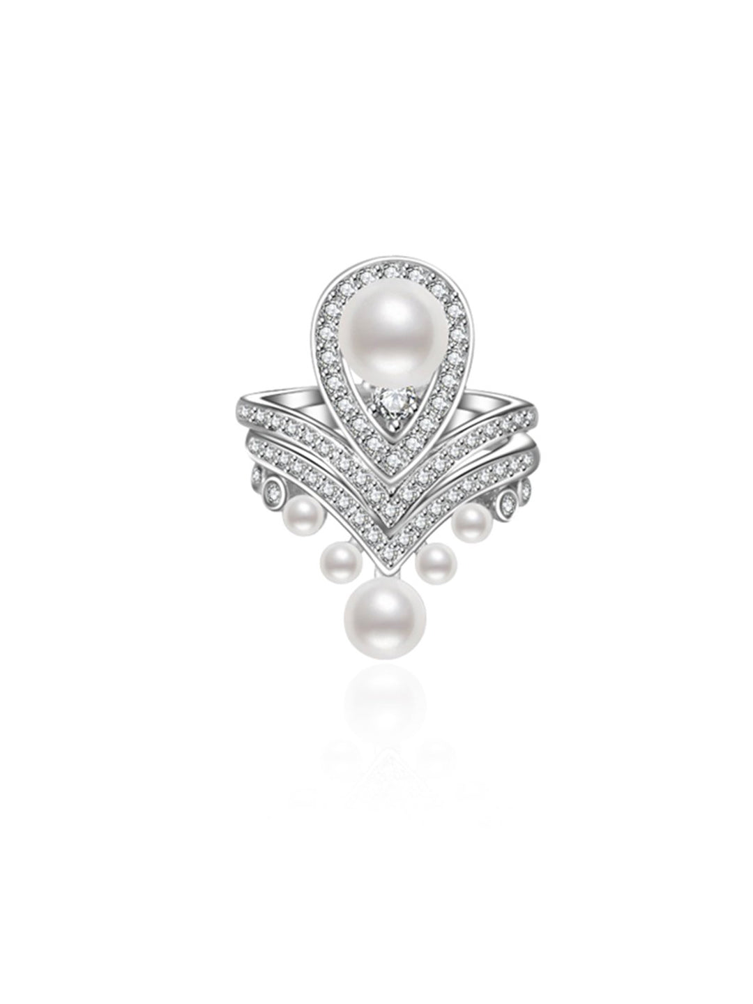 これらは一つになる真珠の指輪二つで、まるで指にのせる冠のようです。一つはハート形、もう一つはひし形。輝きがあり、魅力的で、それぞれにおしゃれな淡水真珠とキュービックジルコニアがあしらわれています。夢のようにロマンチックで輝く二つの指輪は、単独でも一緒でも身につけられます。お姫様にふさわしいロマンチックな真珠の指輪です。