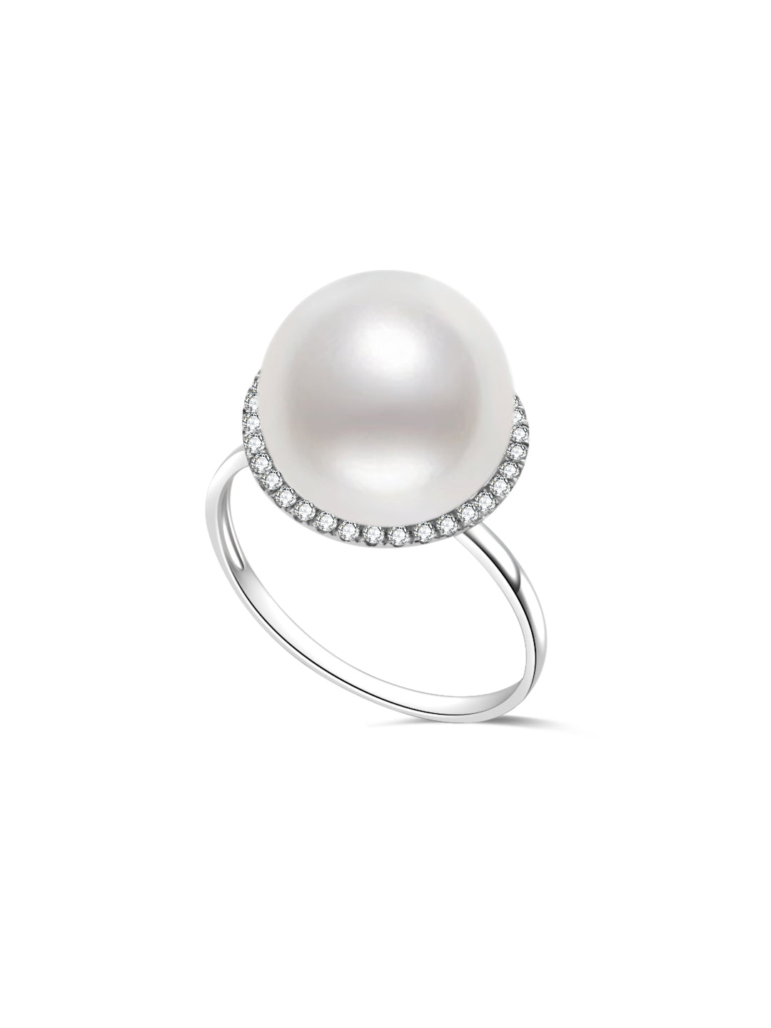 18K South Sea White Pearl Ring KR00098 - PEARLY LUSTRE