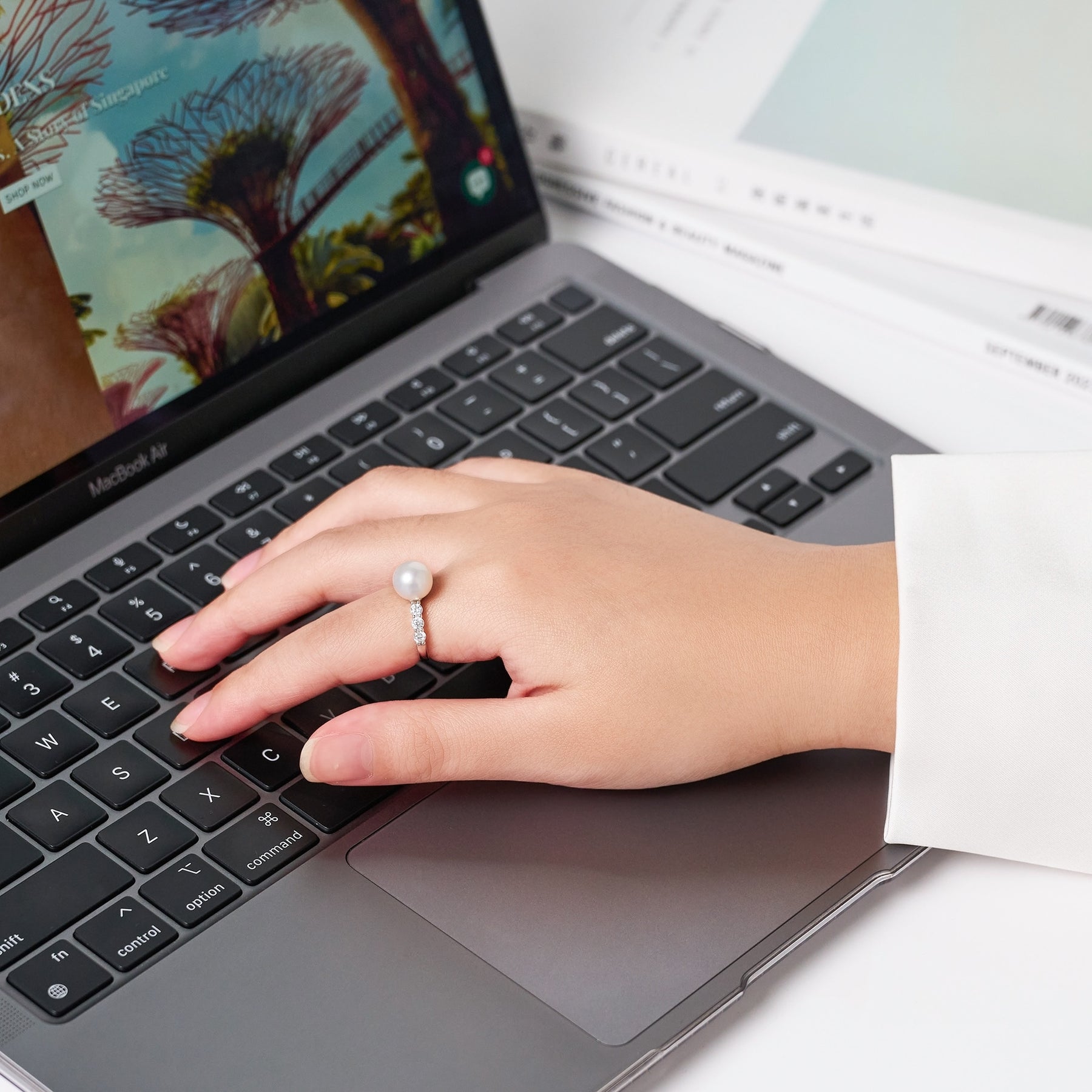 真珠はカキやムール貝によって自然に作られます。適切に手入れすれば、一生(またはそれ以上)輝きや色の濃さを失わずに持ちます。着用後は、pearly lustreのシルバー磨き布を使って真珠のジュエリーを拭いてください。汗や皮脂は酸性で、真珠の輝きに影響を与える可能性があります。