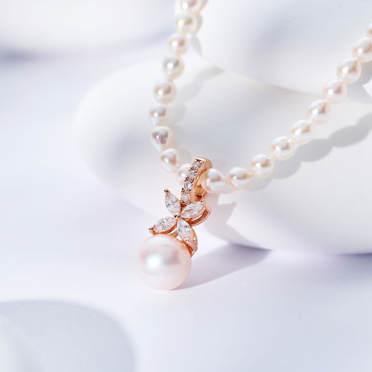 幸運のクローバーにインスパイアされた、幸運と永遠の愛の象徴であるタイムレスなデザイン。この多用途のパールネックレスは取り外し可能なペンダント付きで、普段使いにはペンダントなしでエレガントに、特別な場にはペンダントを加えて華やかにお使いいただけます。