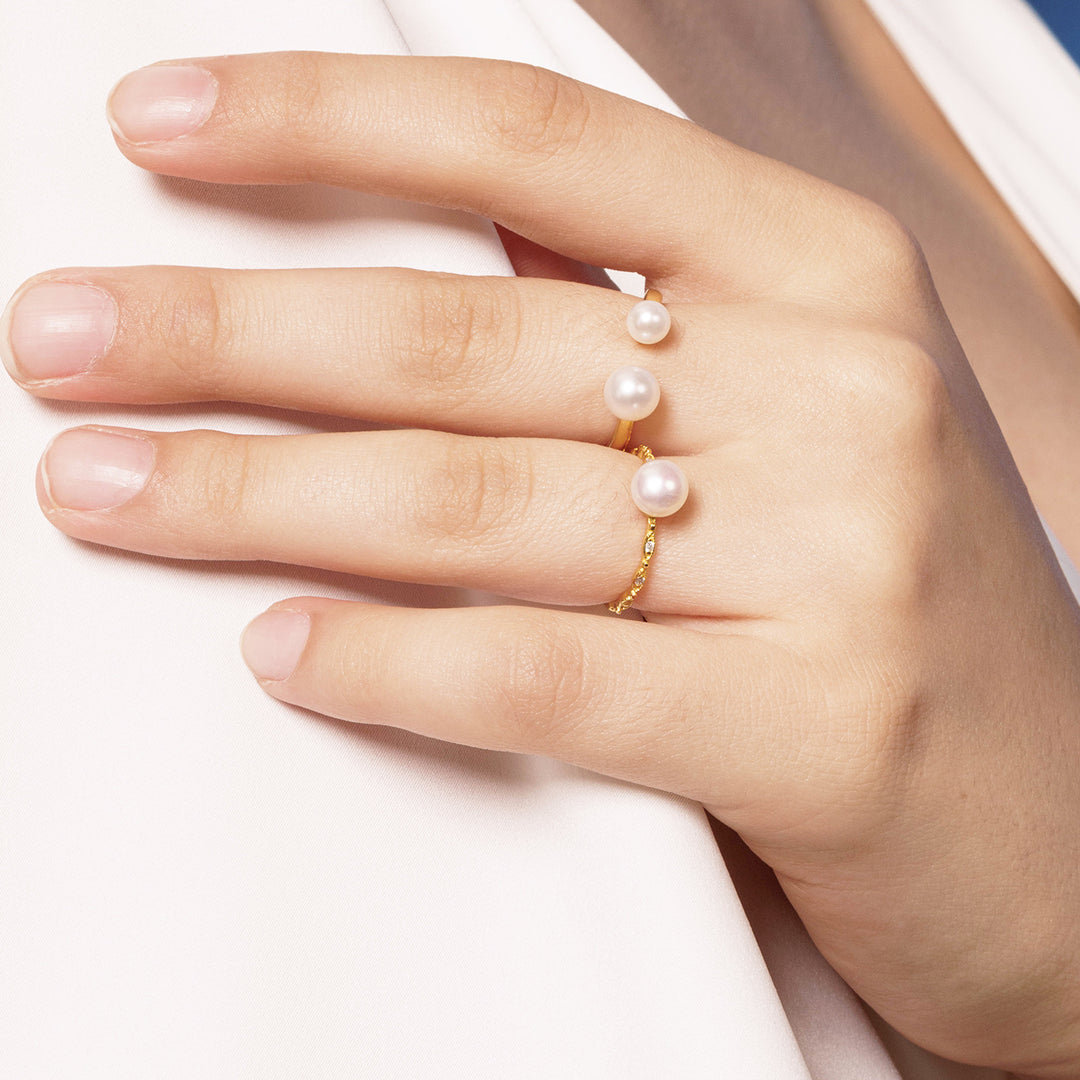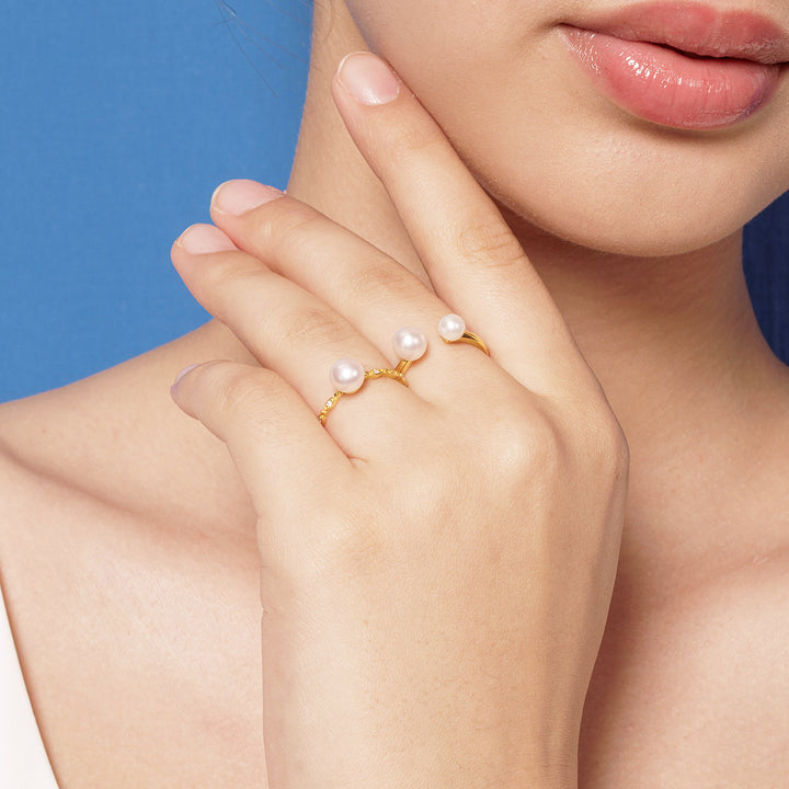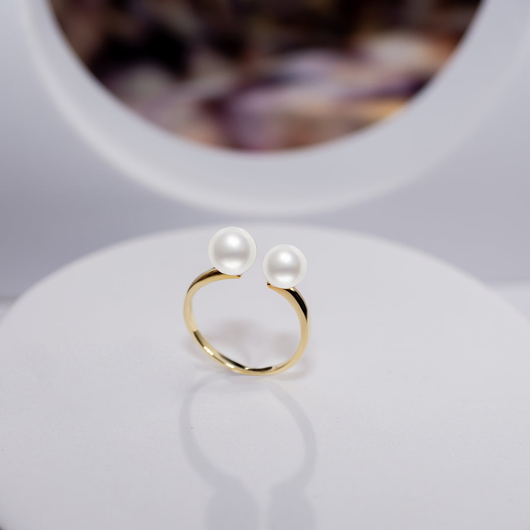 優雅でスタイリッシュ、そして自分らしさをアピールする準備ができている女性のための真珠のリング。クラシックな服装にインスパイアされた若い個性的な女性たちに着用されるべきです。現代的なデザインのダブル真珠のリング