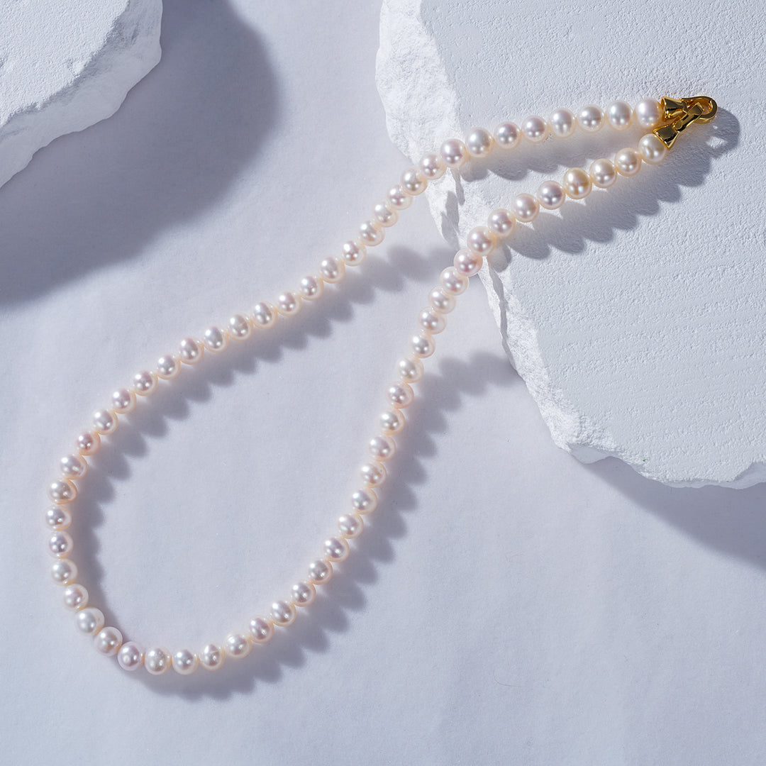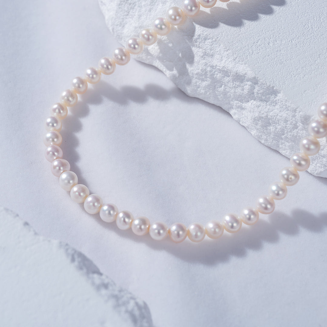 真珠はカキやムール貝によって自然に作られます。適切に手入れすれば、一生(またはそれ以上)輝きや色の濃さを失うことなく持ちます。着用後は、Pearly Lustreのシルバー磨き布で真珠のジュエリーを拭いてください。汗や皮脂は酸性であり、真珠の輝きに影響を与える可能性があります。