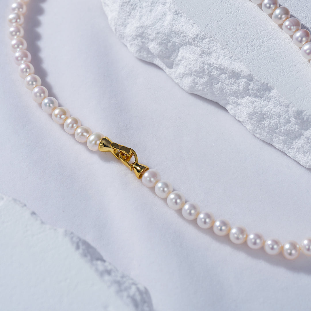 多様性を解き放つ:私たちのパールネックレスは、組み合わさったクラスプ付き。ブレスレットと組み合わせて、どんな場面にも合わせてシームレスに変身させ、スタイルを effortless に引き上げます。