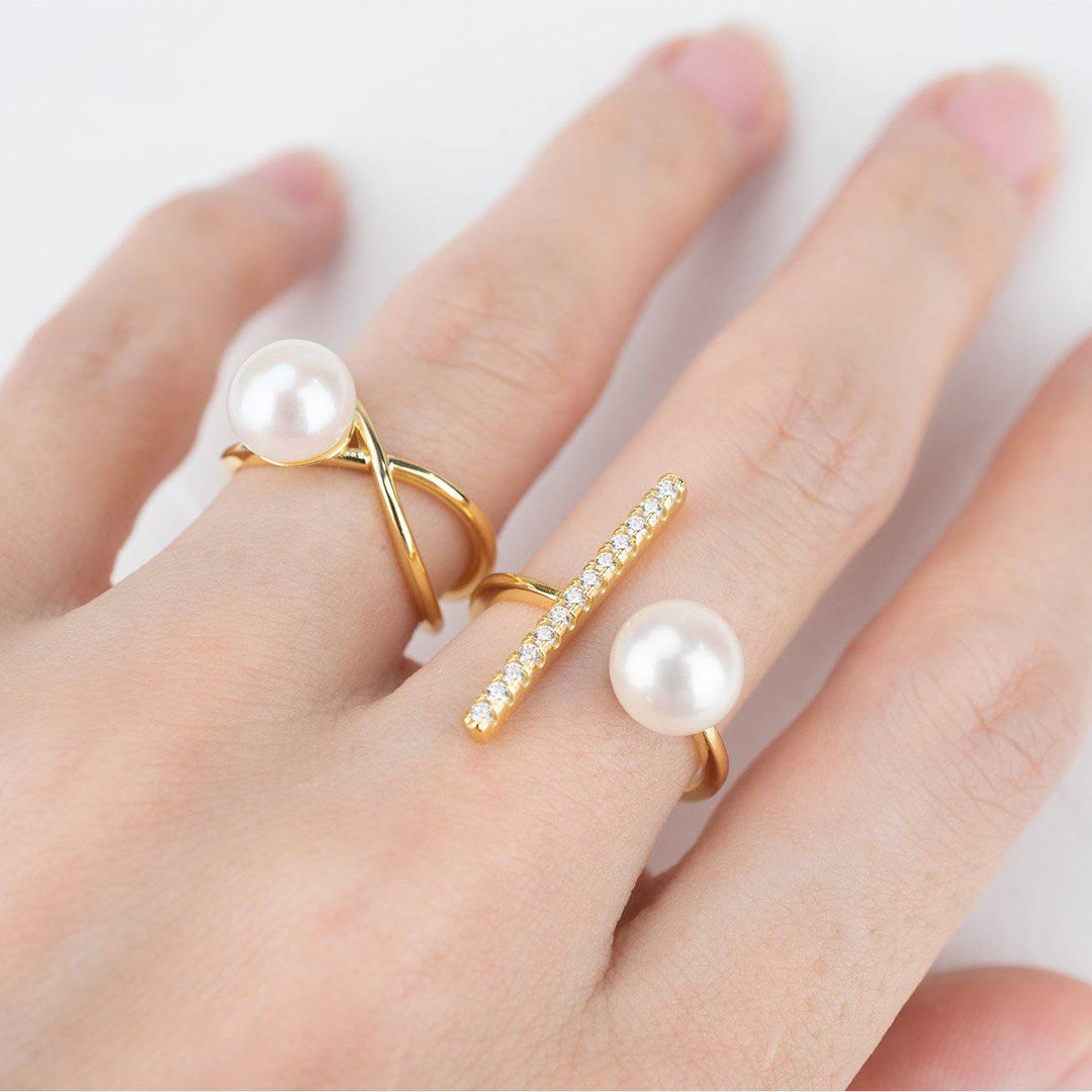 私たちは、現代的なデザイン、高品質のパールを備えた大胆な彫刻のスターリングシルバーバンド、素晴らしくスタイリッシュな、ユニークで唯一無二のパールリングが大好きです。