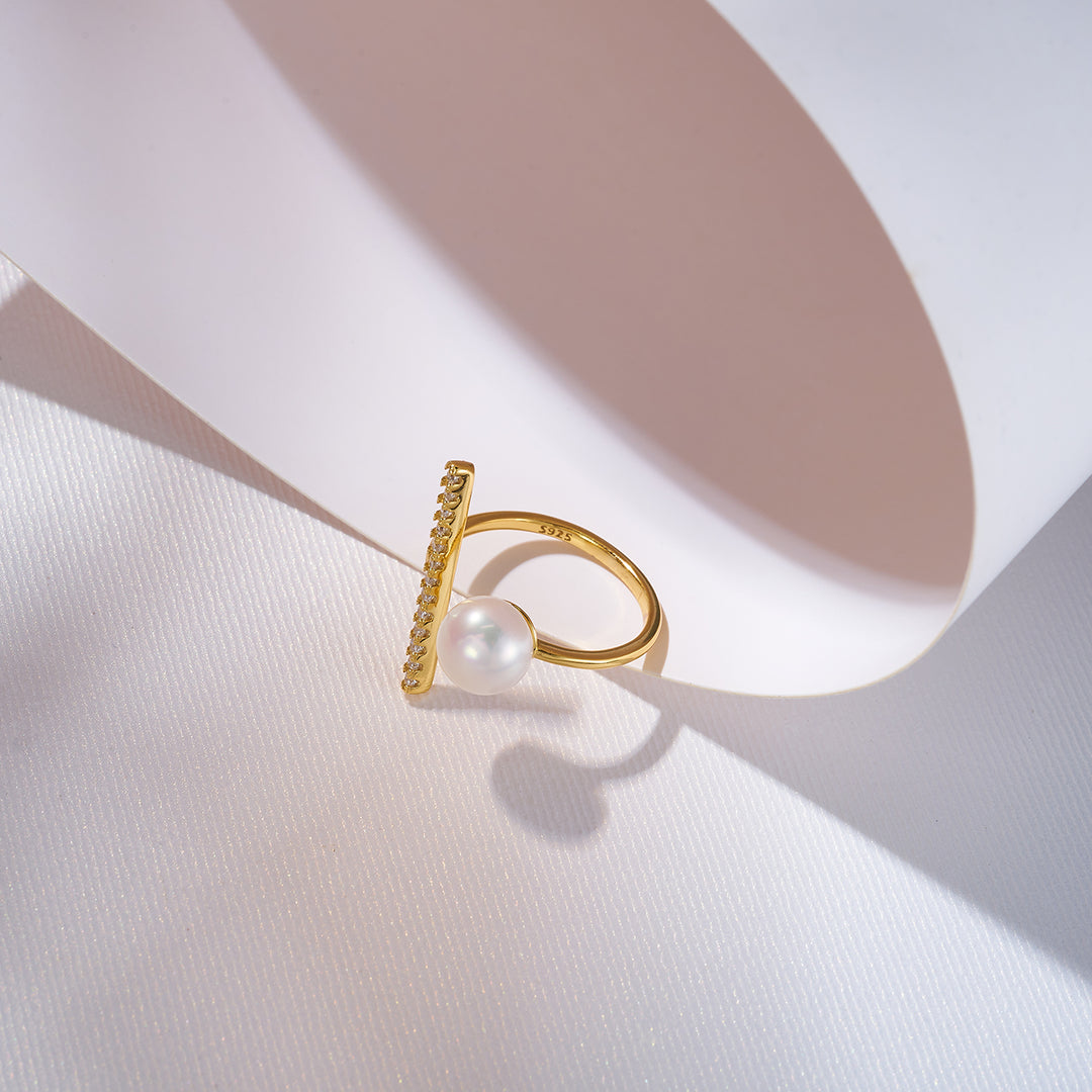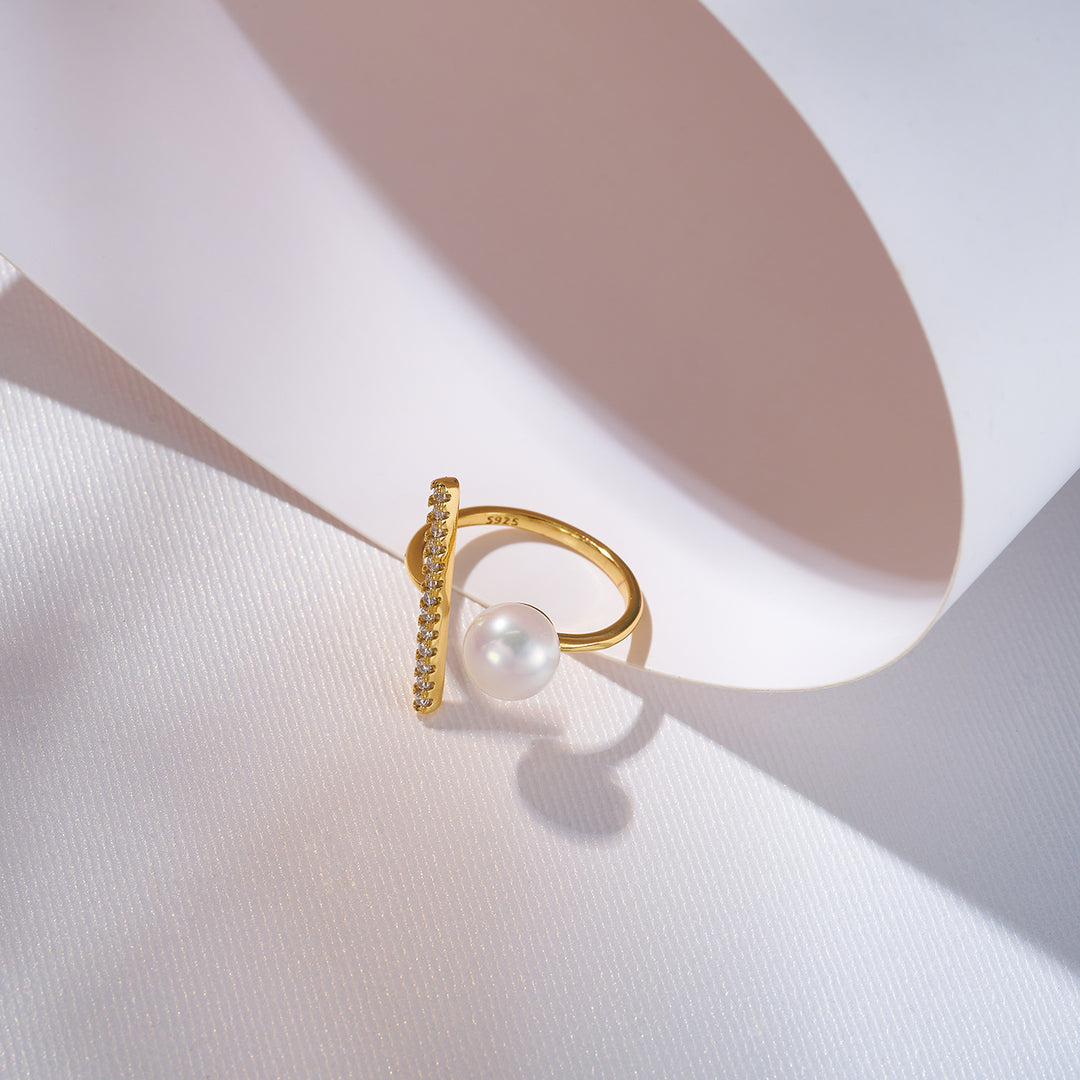 現代的なデザインの素晴らしいパールリング。スタイリッシュでクラシック、ビッグシティにインスパイアされたもので、クラシックで贅沢な服を着た若いスタイリッシュな女性にぴったりです。
