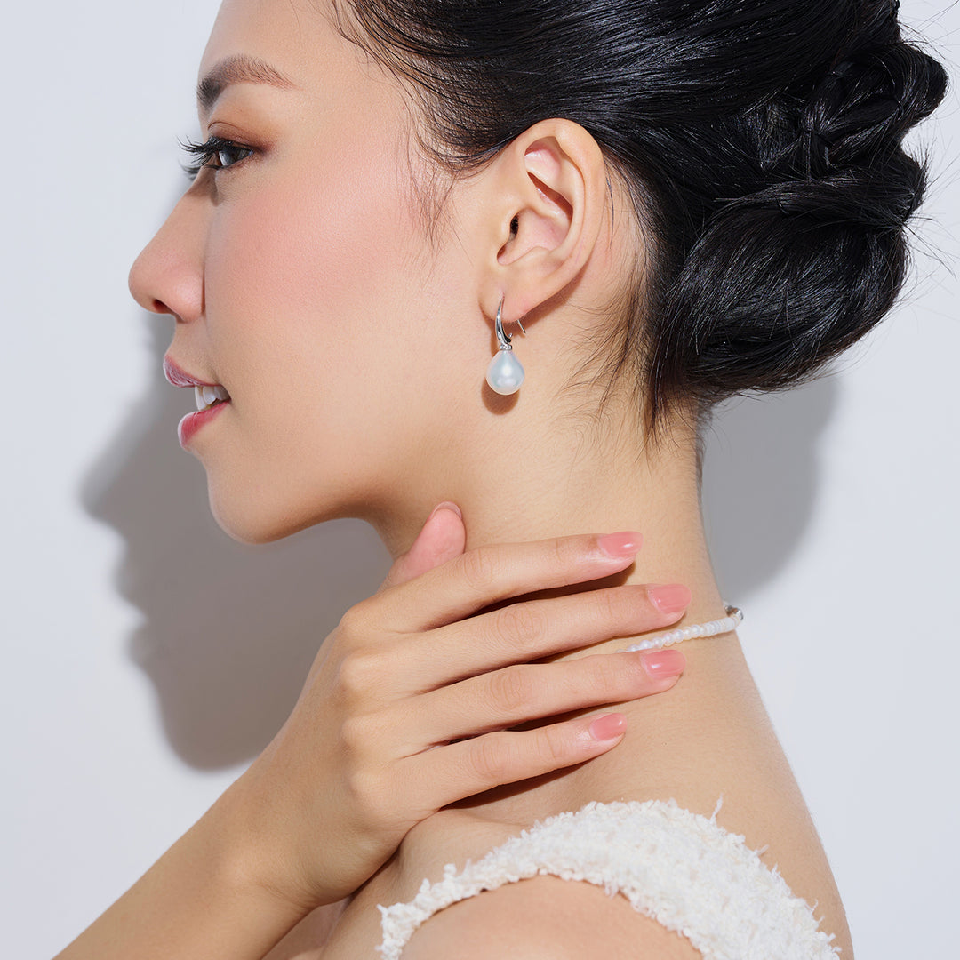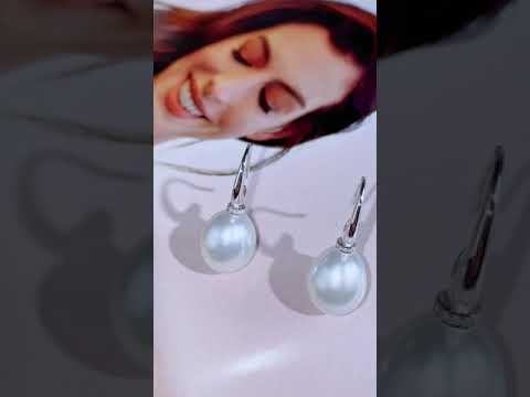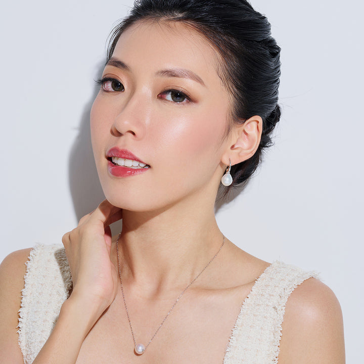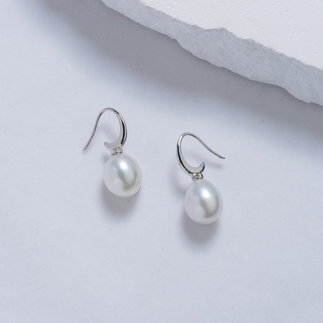 18k Solid Gold Diamond South Sea White Pearl Earrings KE00103 - PEARLY LUSTRE