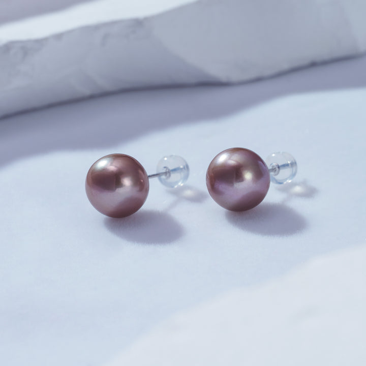 Elegant 18K Gold Top Grade Edison Purple Pearl Stud Earrings KE00019 - PEARLY LUSTRE