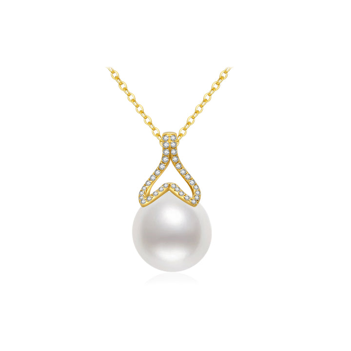 18K Solid Gold Diamond Saltwater Pearl Necklace KN00134 - PEARLY LUSTRE