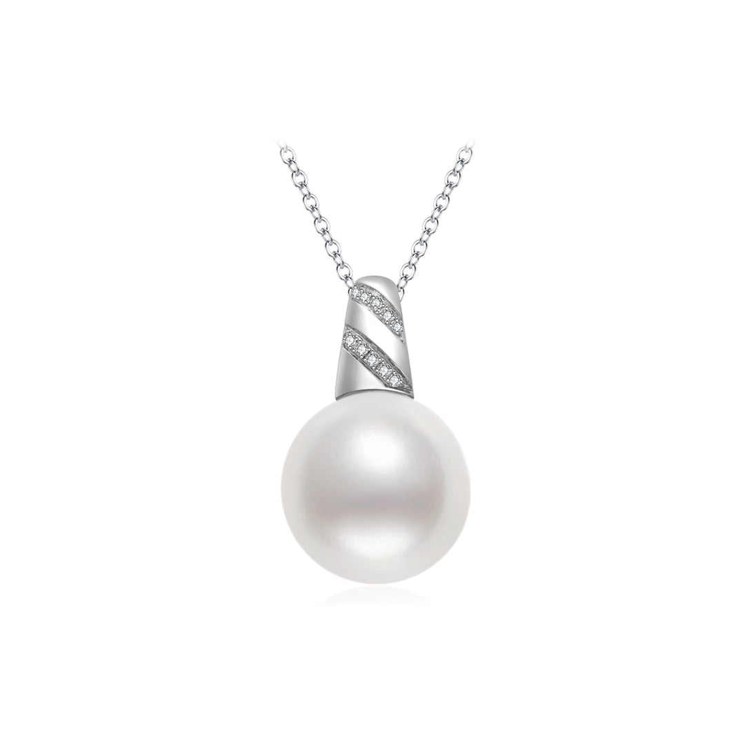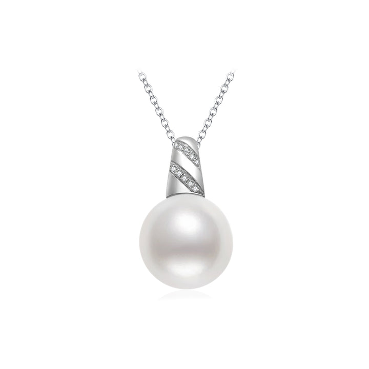 18K Solid Gold Diamond Saltwater Pearl Necklace KN00136 - PEARLY LUSTRE