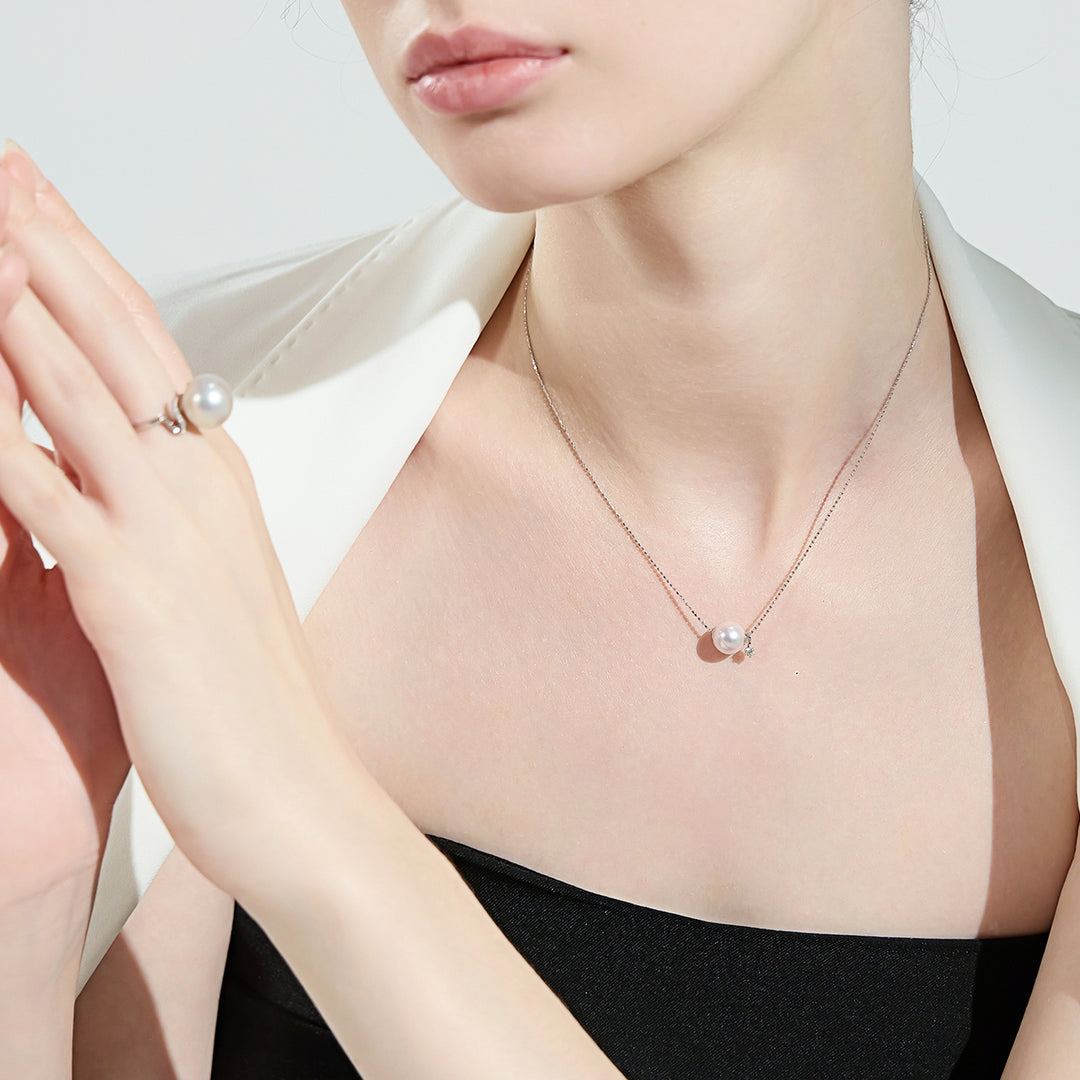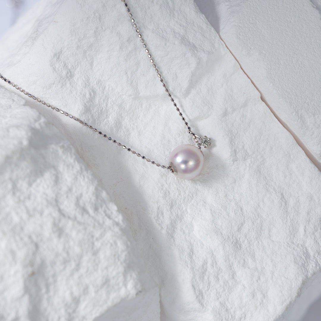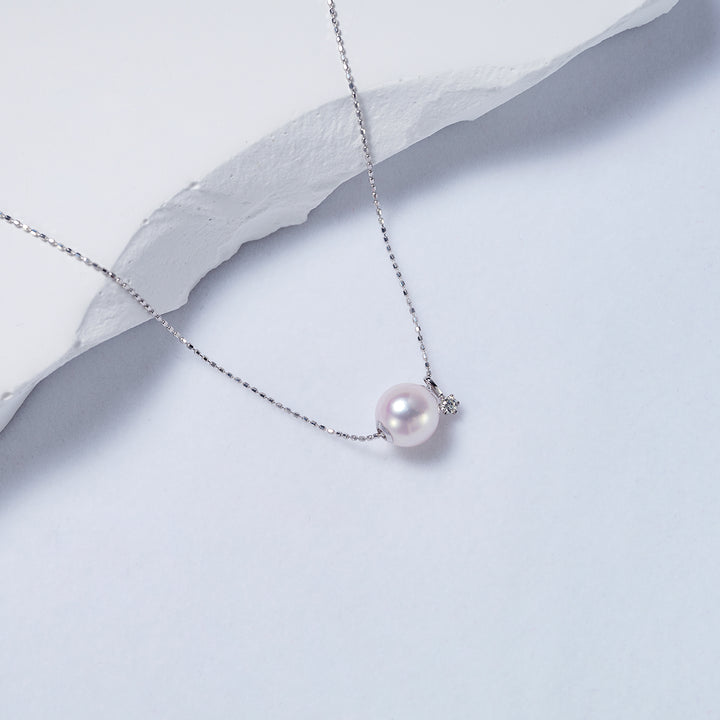 18K Solid Gold Diamond Akoya Pearl Necklace KN00187 | Possibility - PEARLY LUSTRE