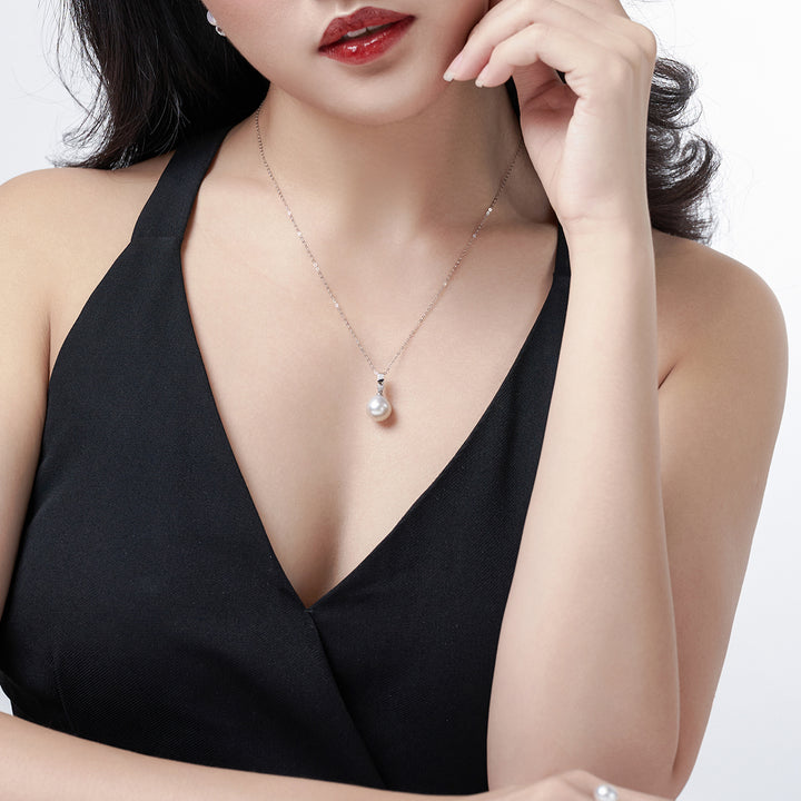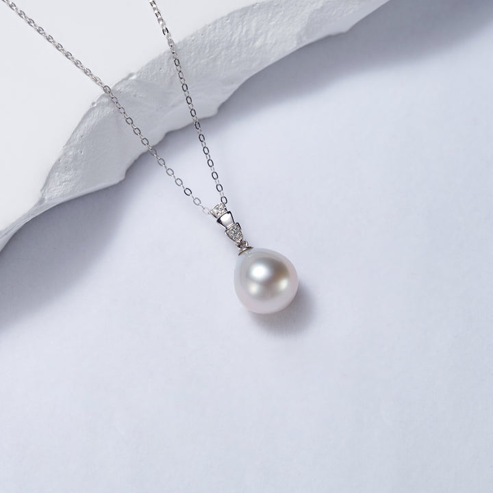 18K Solid Gold Diamond Saltwater Pearl Necklace KN00199 - PEARLY LUSTRE