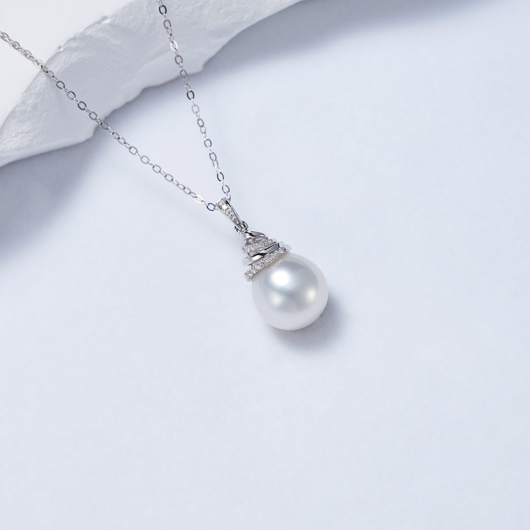 18K Solid Gold Diamond Saltwater Pearl Necklace KN00200 - PEARLY LUSTRE