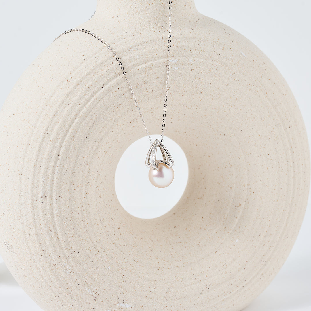 18K Solid Gold Diamond Australian White Saltwater Pearl Necklace KN00239 - PEARLY LUSTRE