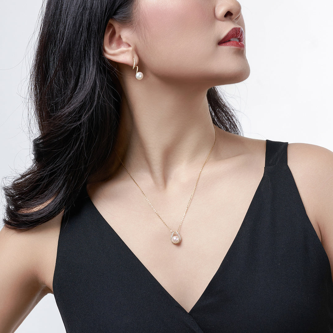 18K ソリッド ゴールド ダイヤモンド 花珠 アコヤ パール ネックレス KN00201