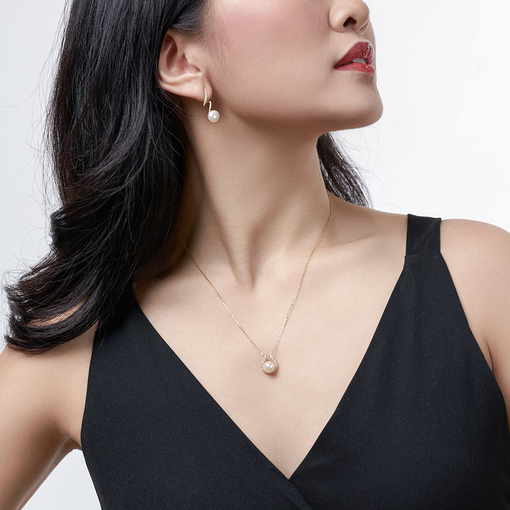 18K Solid Gold Diamond Hanadama Akoya Pearl Necklace KN00201 - PEARLY LUSTRE