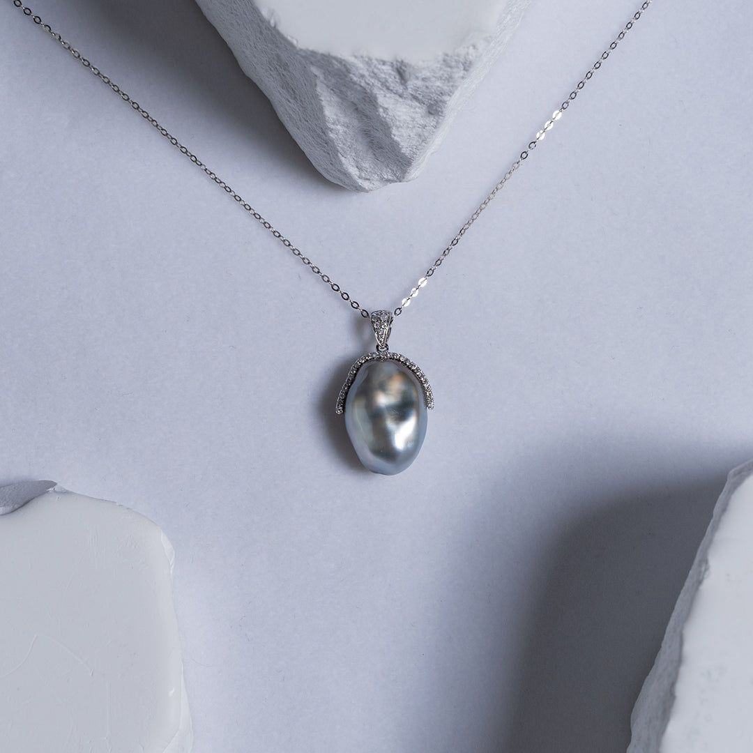 魅力的なタヒチケシパールの魅惑的な色合いに浸り、スタイルをワンランクアップさせましょう。13-18mmの光沢のあるタヒチケシパールがきらめくダイヤモンドに支えられ、どんな華やかなイベントでもシックでトレンディに見えることでしょう。