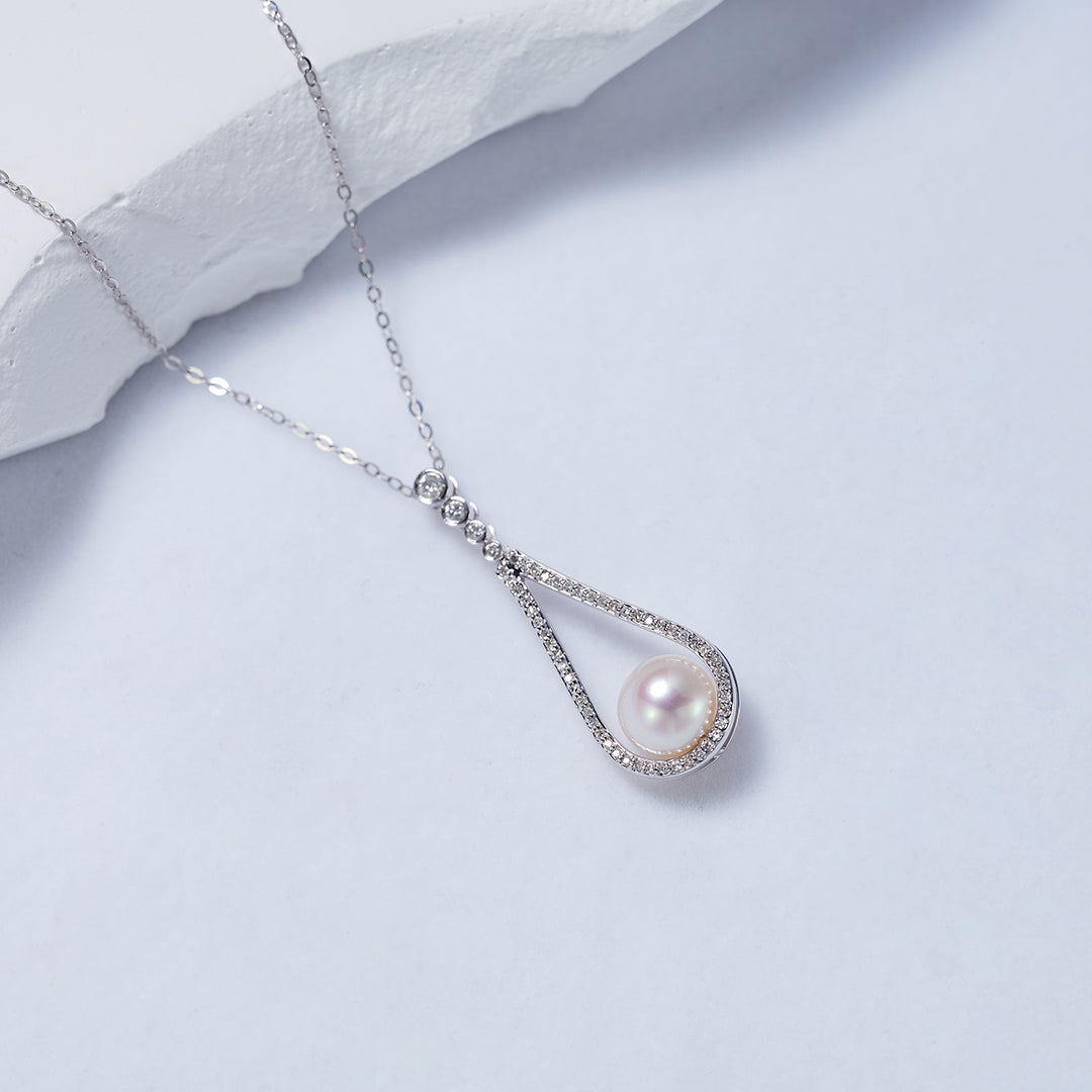 時代を超えたホワイトゴールドのパールペンダント。特別な機会に最適です。最高級のパール、シンプルなエレガンス、洗練されたタッチ。