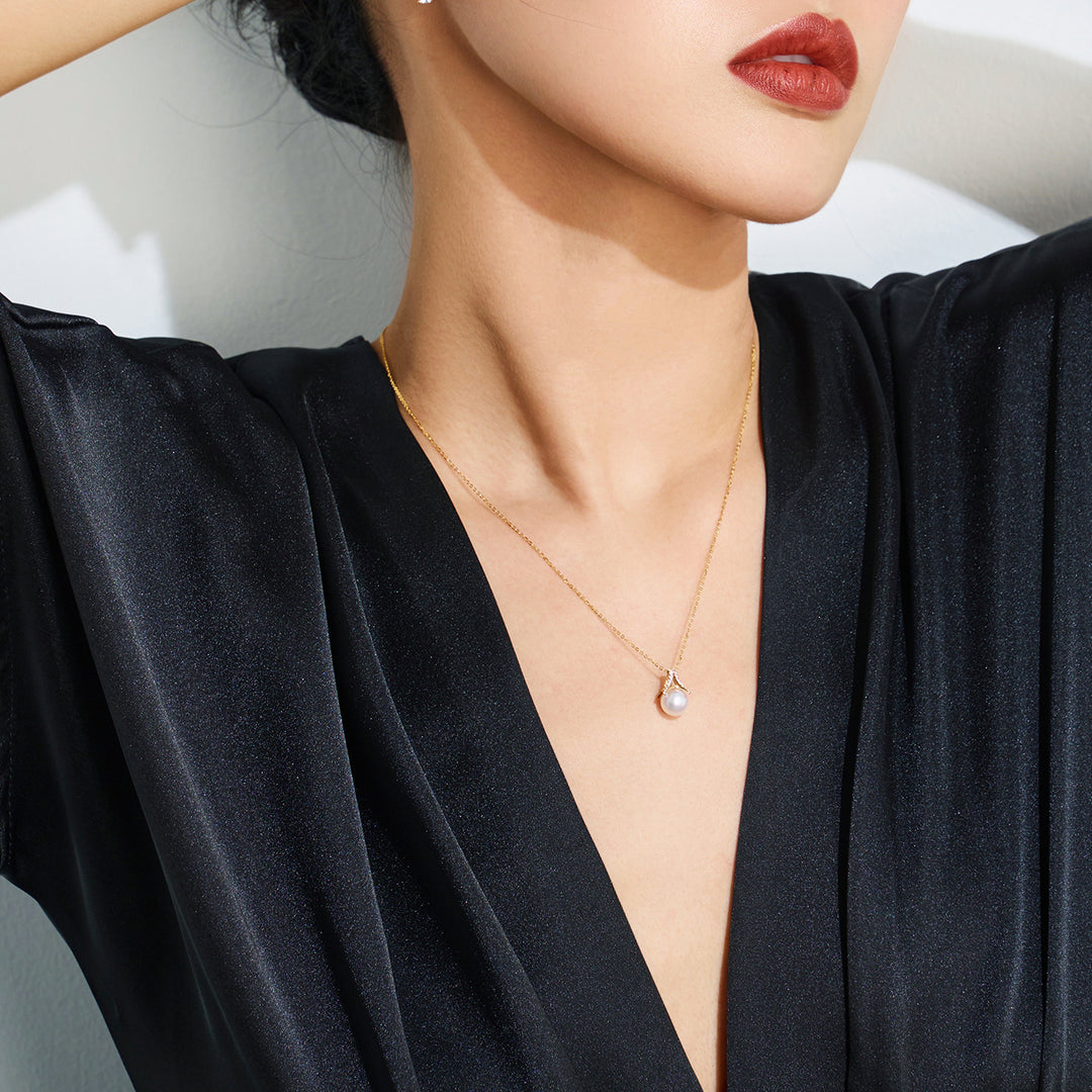 18K Solid Gold Hanadama Akoya Pearl Necklace KN00110 - PEARLY LUSTRE