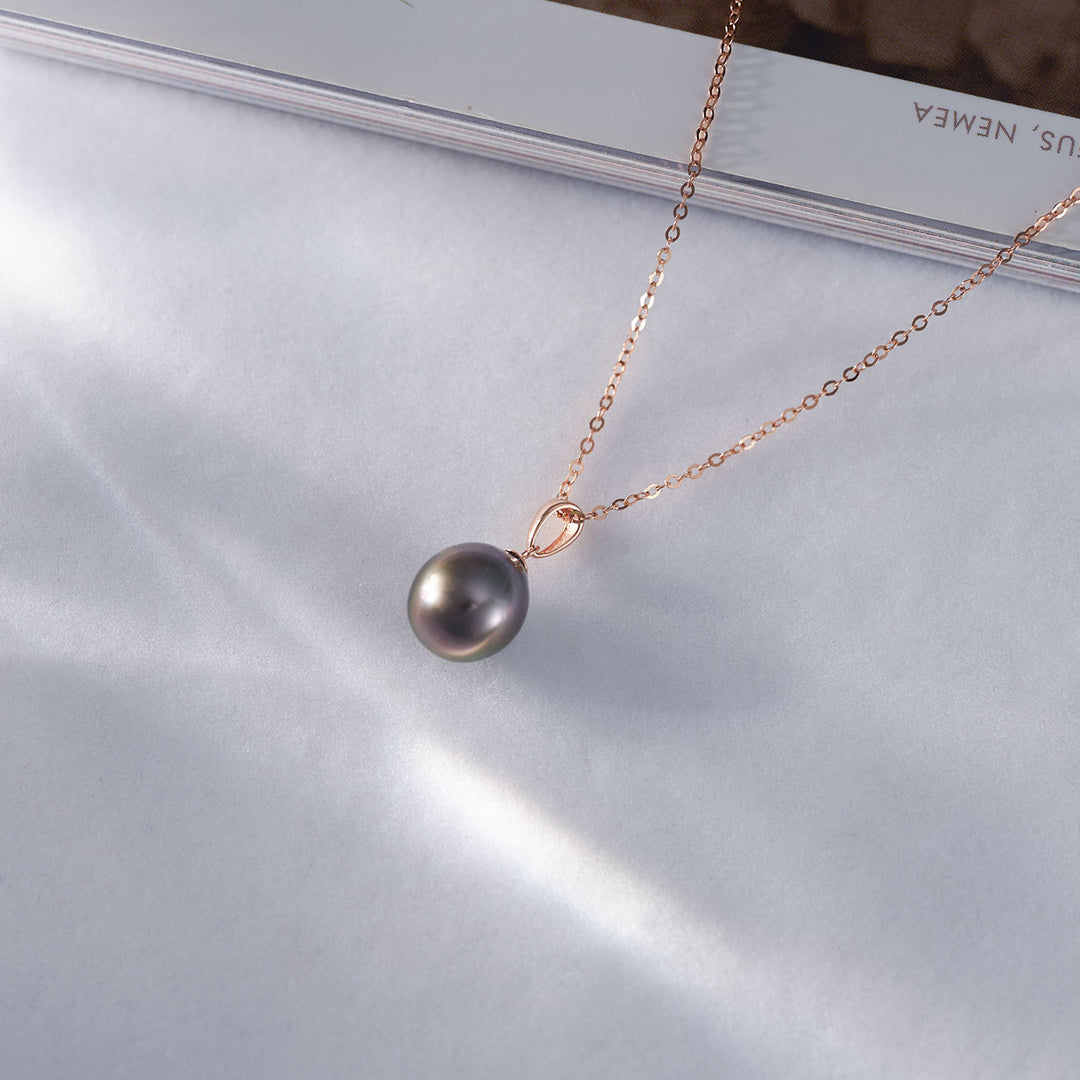 18K Solid Gold Saltwater Tahitian Pearl Necklace KN00179 - PEARLY LUSTRE