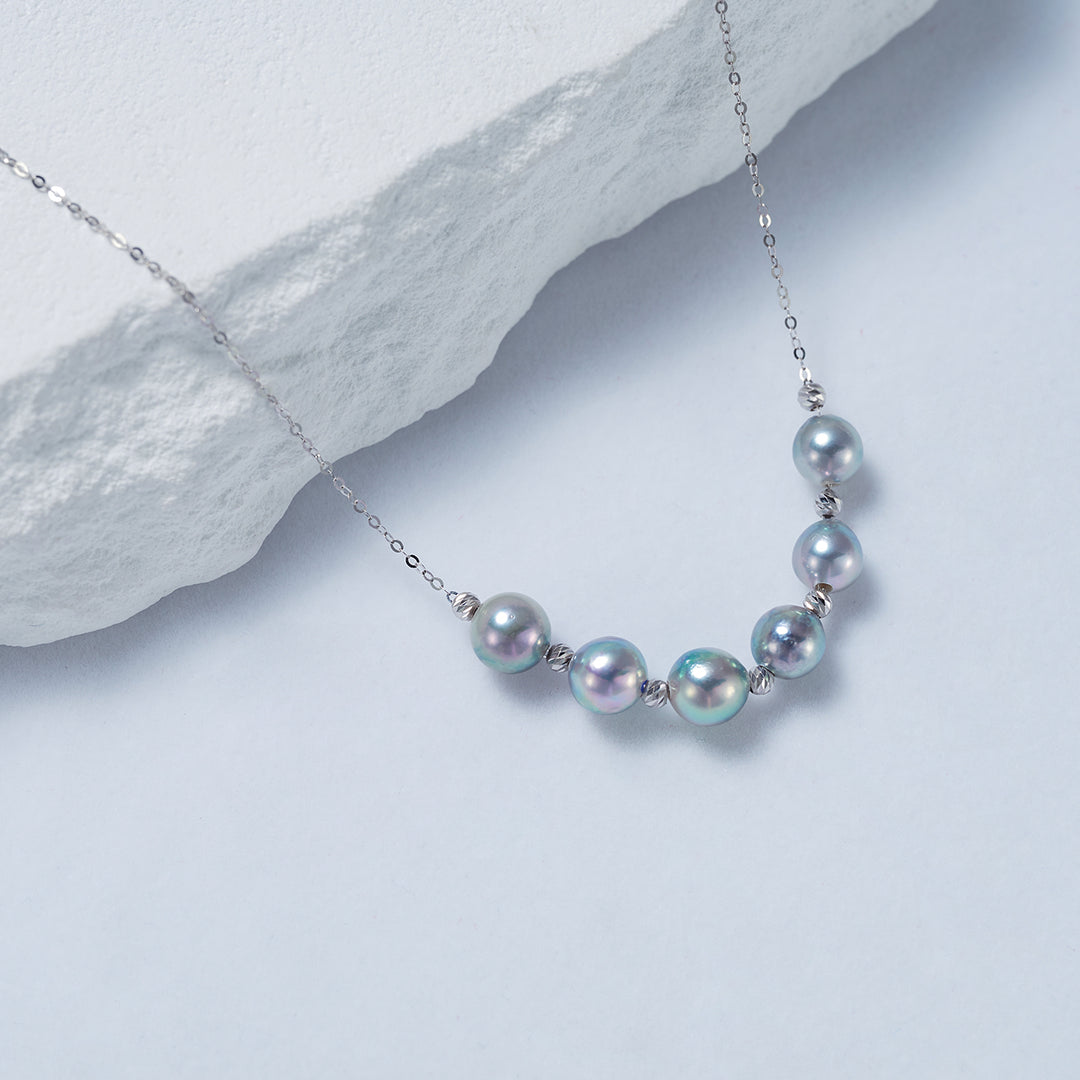 シルバー ブルーアコヤ ネックレスの魅力に浸ってください。あらゆる場面に合う、さまざまなスタイルを備えたシックなステートメントです。魅惑的な真珠で飾られたこのネックレスは、カジュアルからフォーマルまでシームレスに移行し、あらゆる場面で輝きを放つ、万能なエレガンスを求める方にとって必需品です。