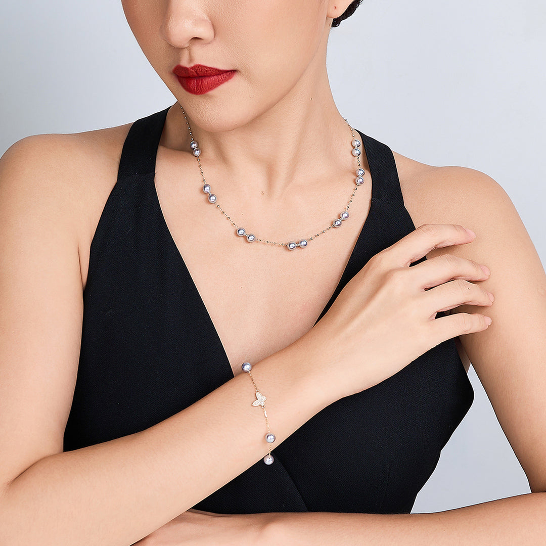 非常に美しいアコヤネックレスは、星の光のように輝き、若い女性にぴったりです。ピンクのオーバートーンが彼女たちのバラ色の肌にマッチし、本当に魅力的なルックを作り出します。これは、彼女の人生の特別な瞬間を記念するための初めてのアコヤパールネックレスとして完璧な選択です。