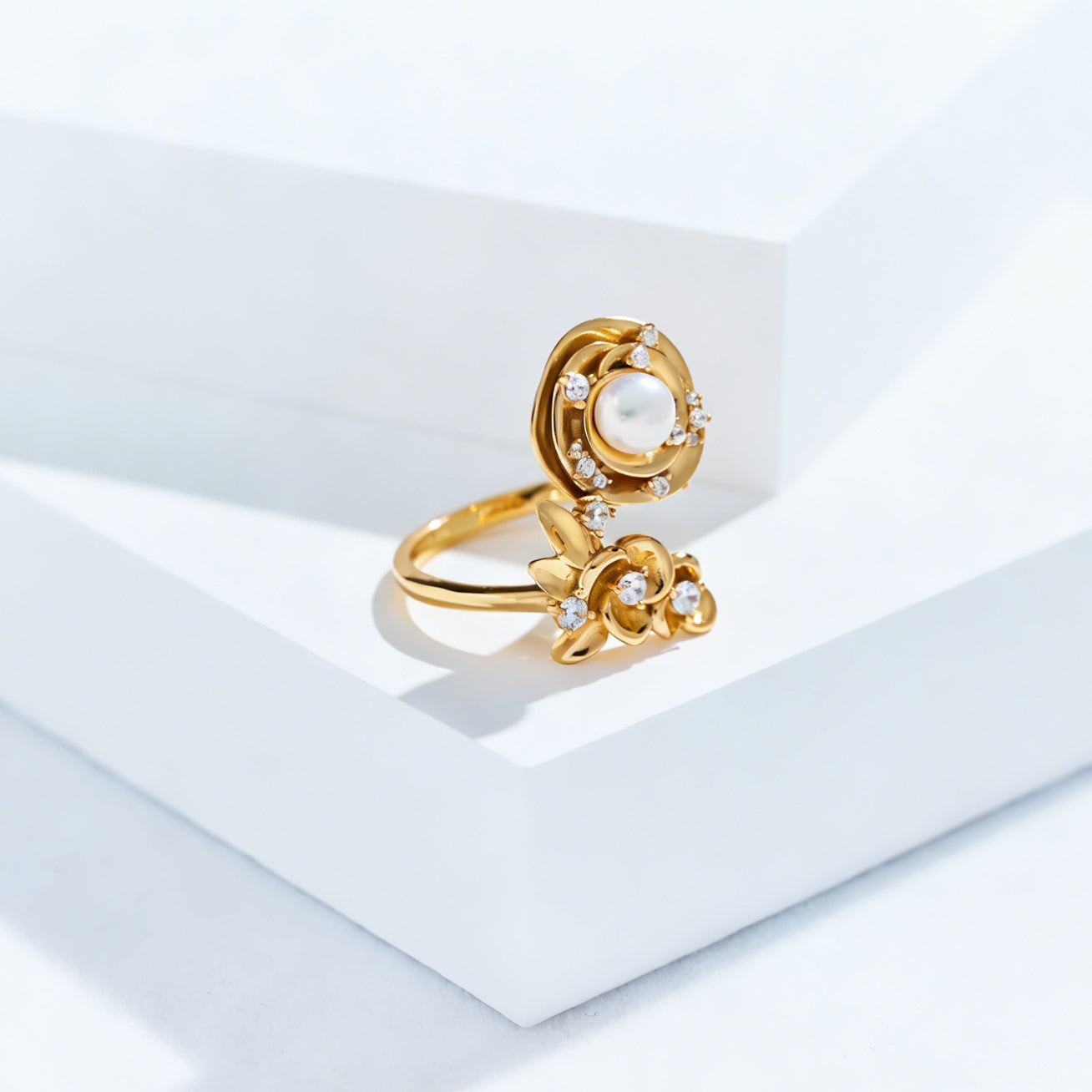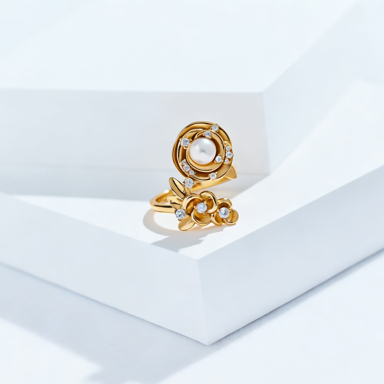 繊細な真珠と優雅なラインがロマンスをささやきます。まるで花びらが肌にそっと触れるように。愛されるにふさわしい人のために—優しく、美しく、心から愛されるために。
