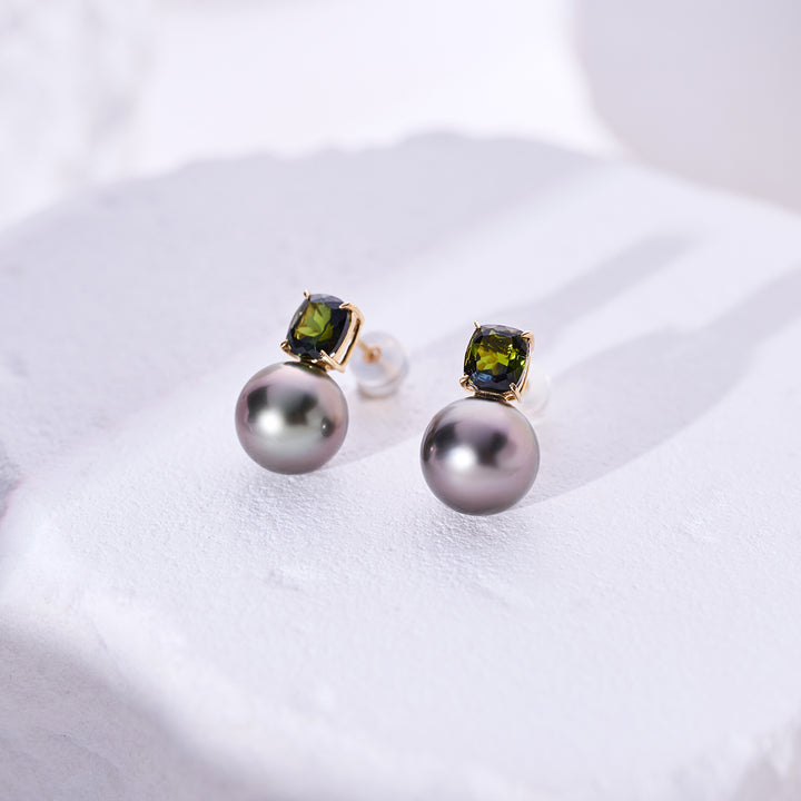 18K Gold Tahitian Pearl Earrings KE00283 - PEARLY LUSTRE