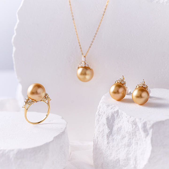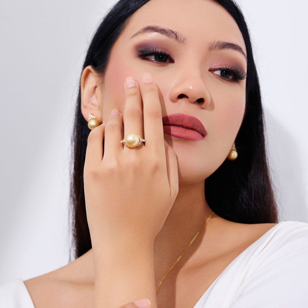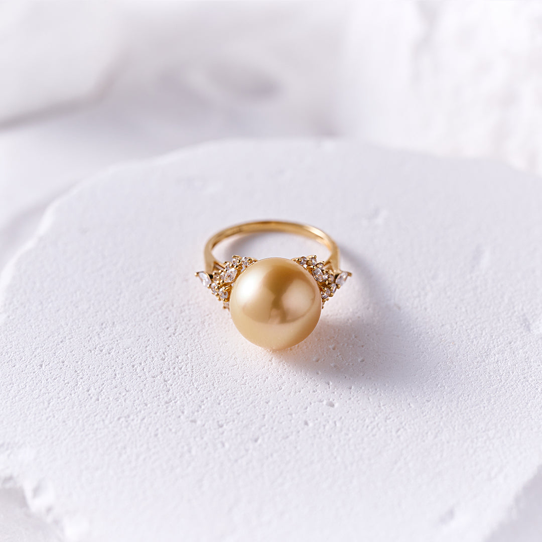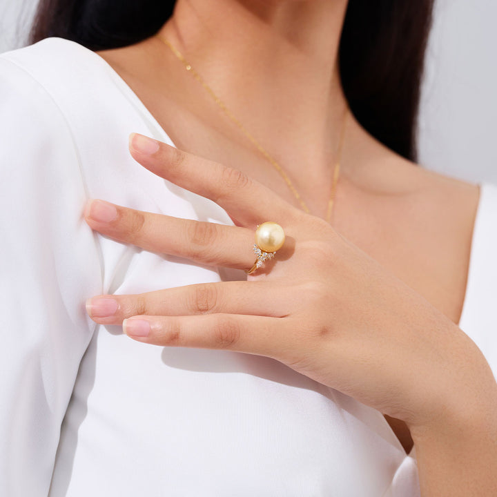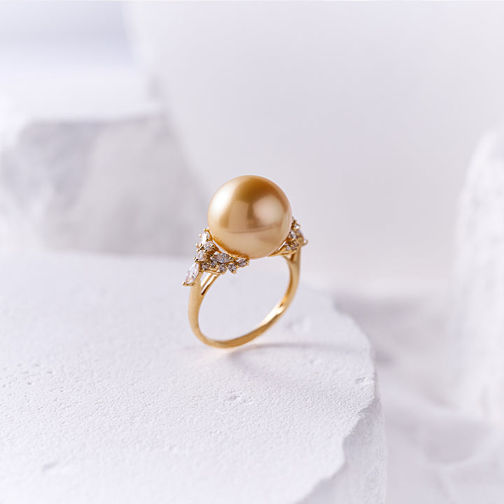 18K Solid Gold South Sea Golden Pearl Ring KR00137 - PEARLY LUSTRE