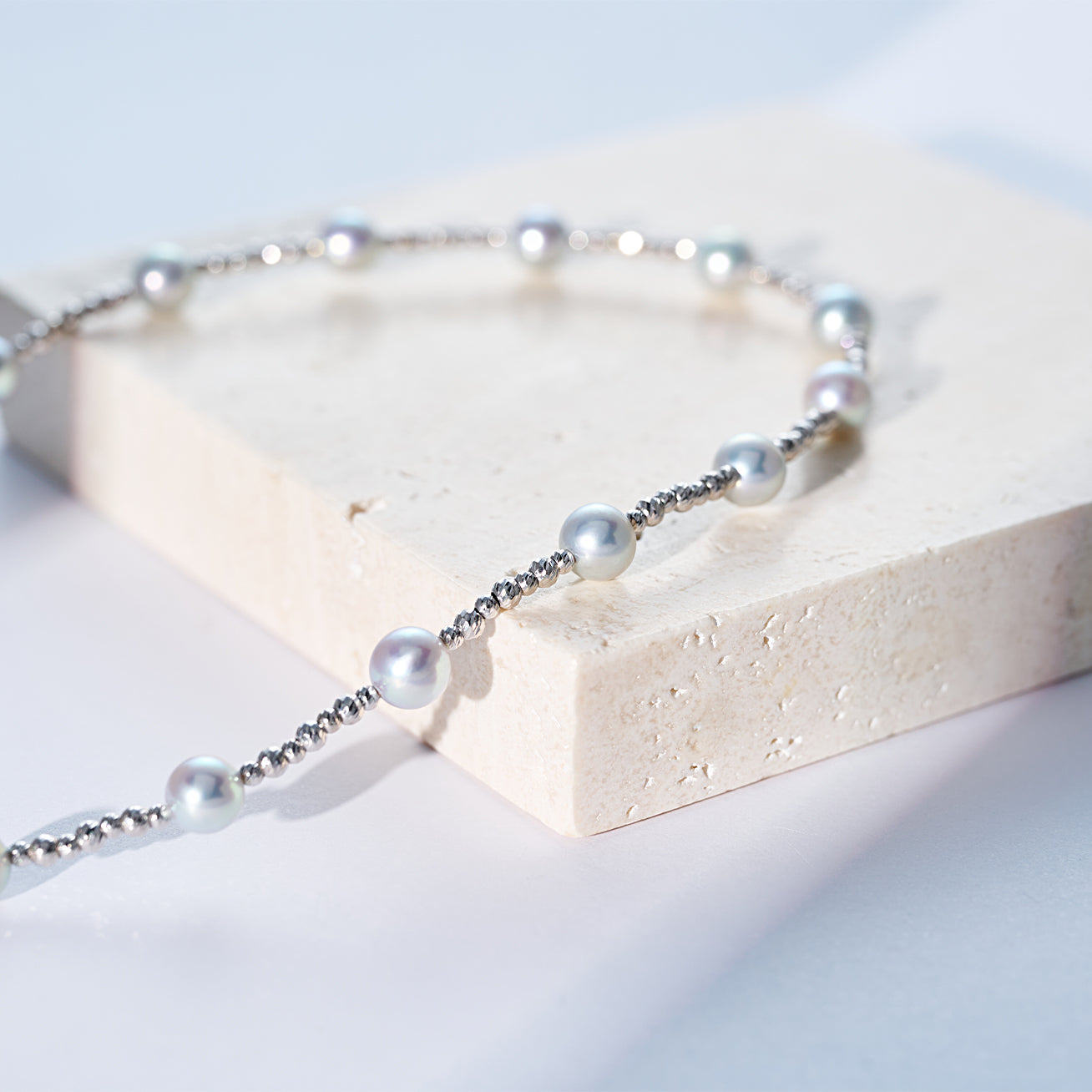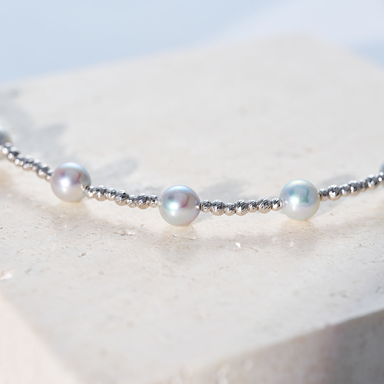 18k ソリッドゴールド シルバー ブルー アコヤパール ネックレス KN00372