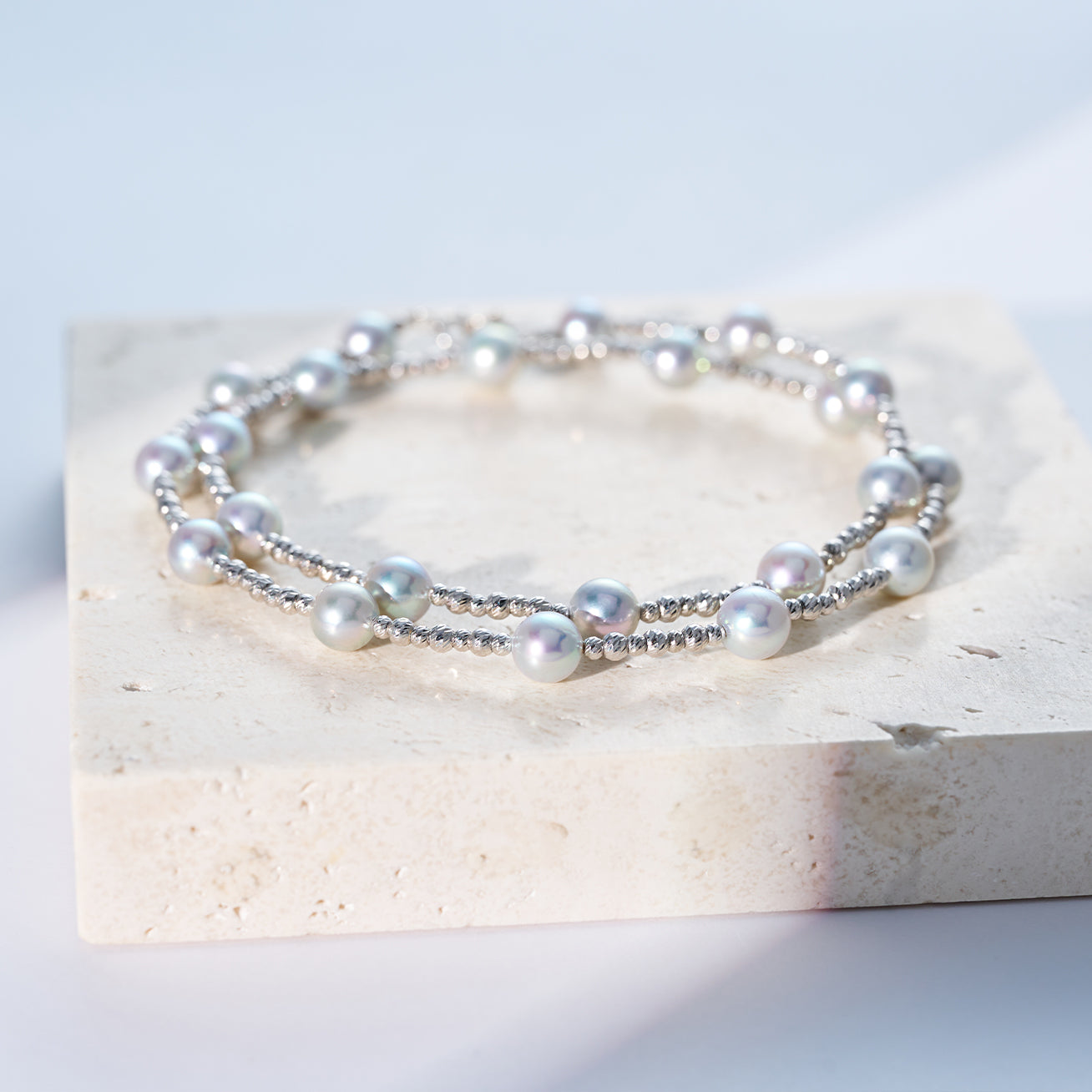 星明かりのように輝く、若い女性にぴったりの非常に美しいアコヤネックレスです。ピンクのオーバートーンが彼女たちのバラ色の肌を引き立て、本当に魅力的なルックを作り出します。これは、彼女の人生の特別な瞬間を記念する、初めてのアコヤパールネックレスに最適な選択です。