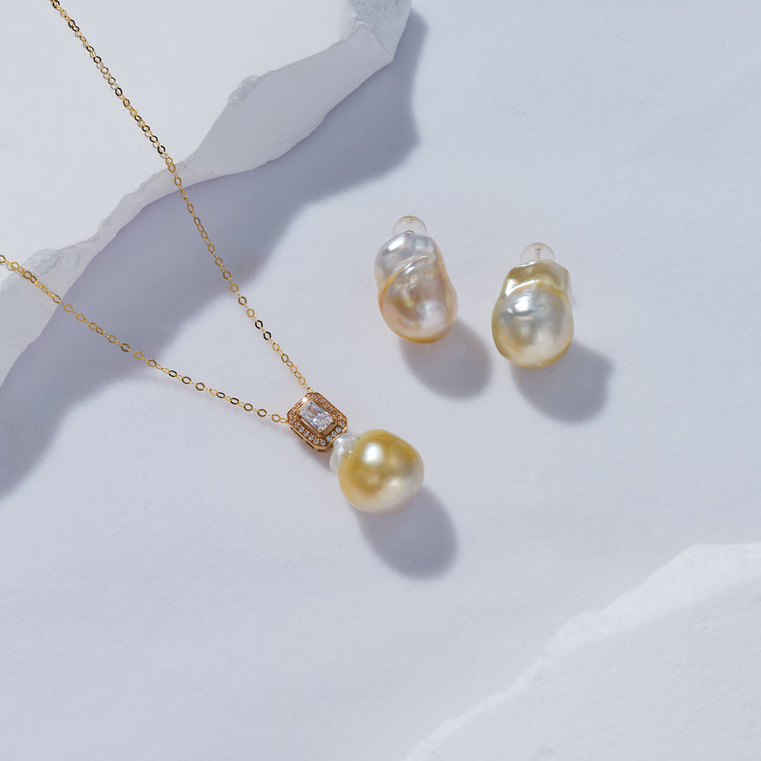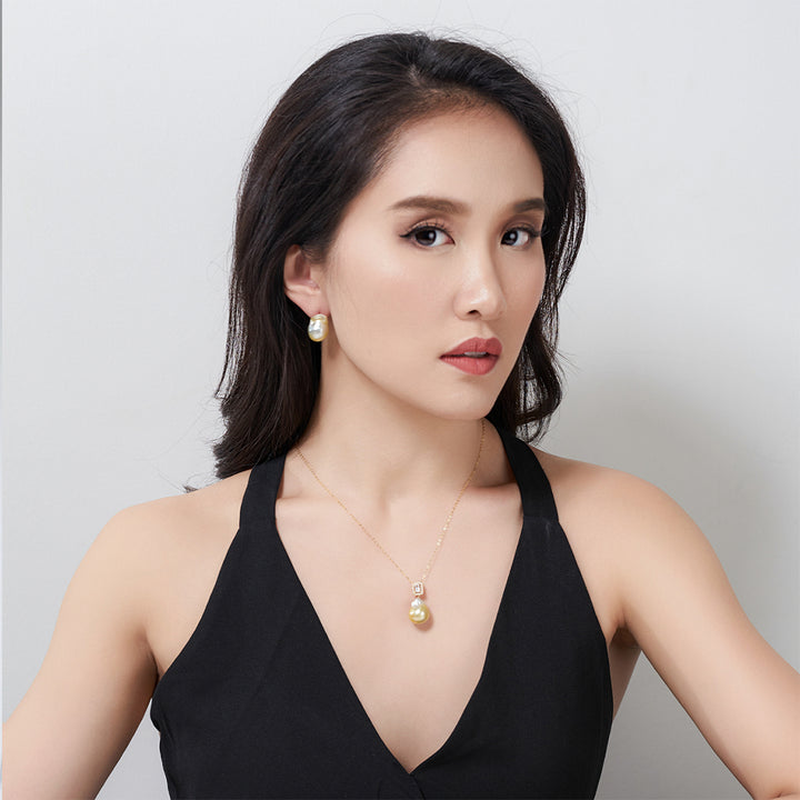 荘厳な輝きで自分を飾る 壮大絶妙なbaroque調のゴールデン サウス シーパール イヤリングの永遠の贅沢をお楽しみください。