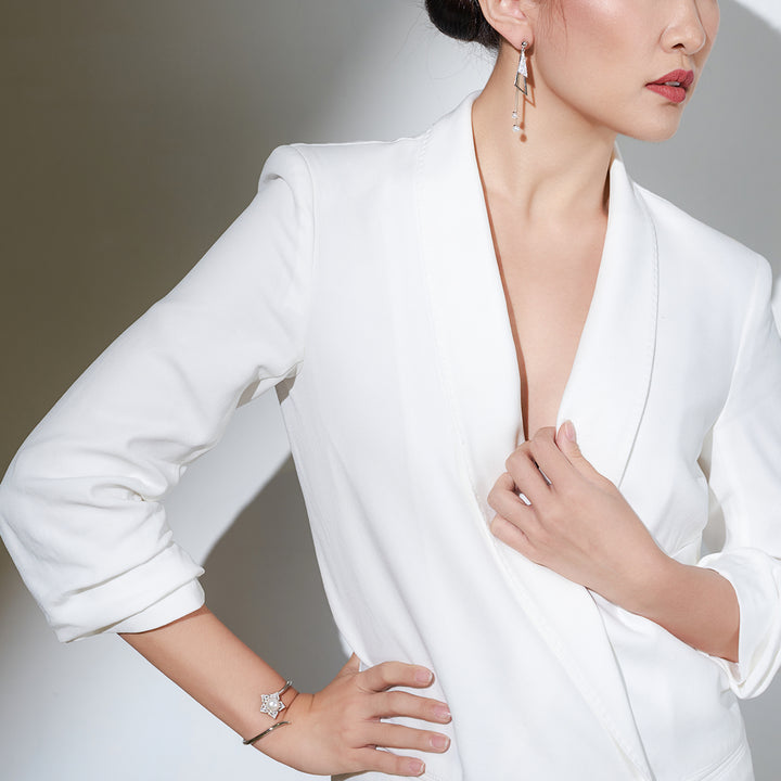 完璧なフィット感を確保するために、ピンをバックストッパーの大きな穴に優しく差し込みます。慎重に位置を合わせて、軽く押してください—力は不要です!この繊細なジュエリーは、毎日の360度の美しさのために丁寧に扱いましょう。
