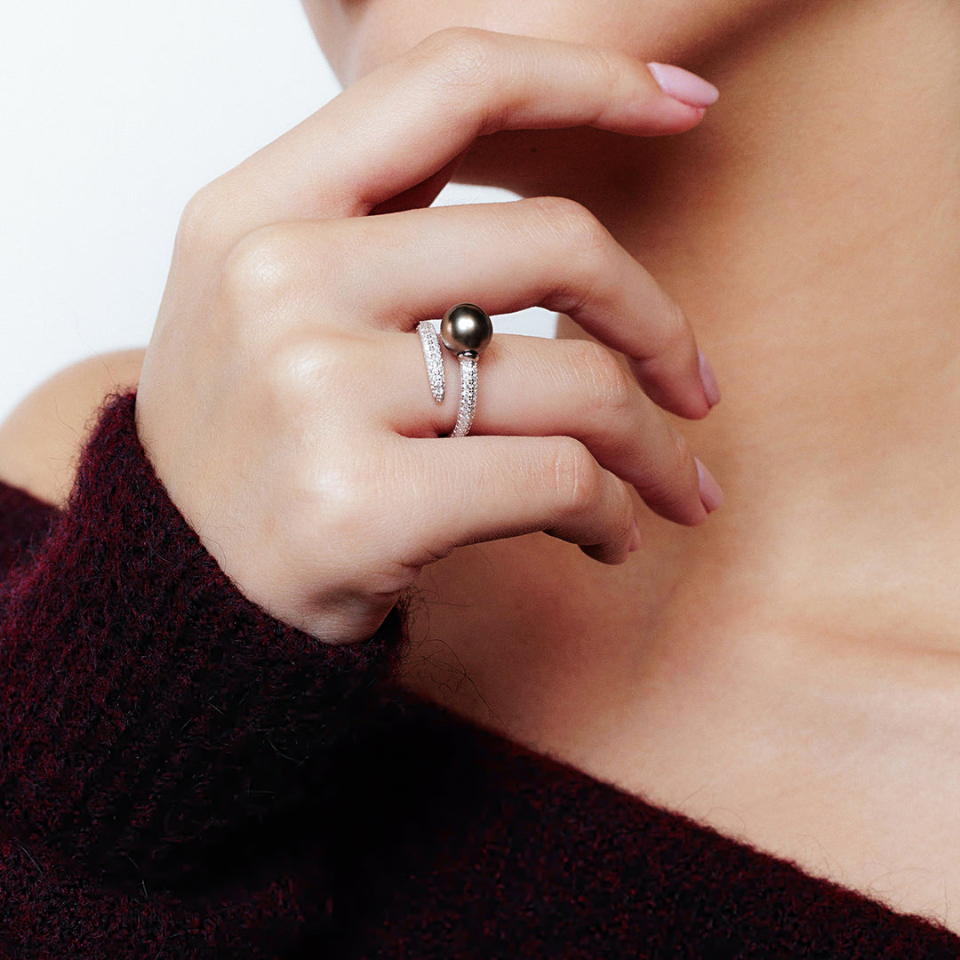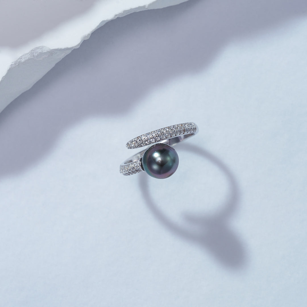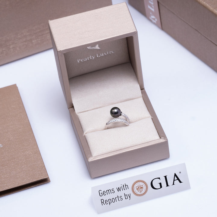 Elegant Saltwater Tahitian Pearl Ring WR00125 - PEARLY LUSTRE