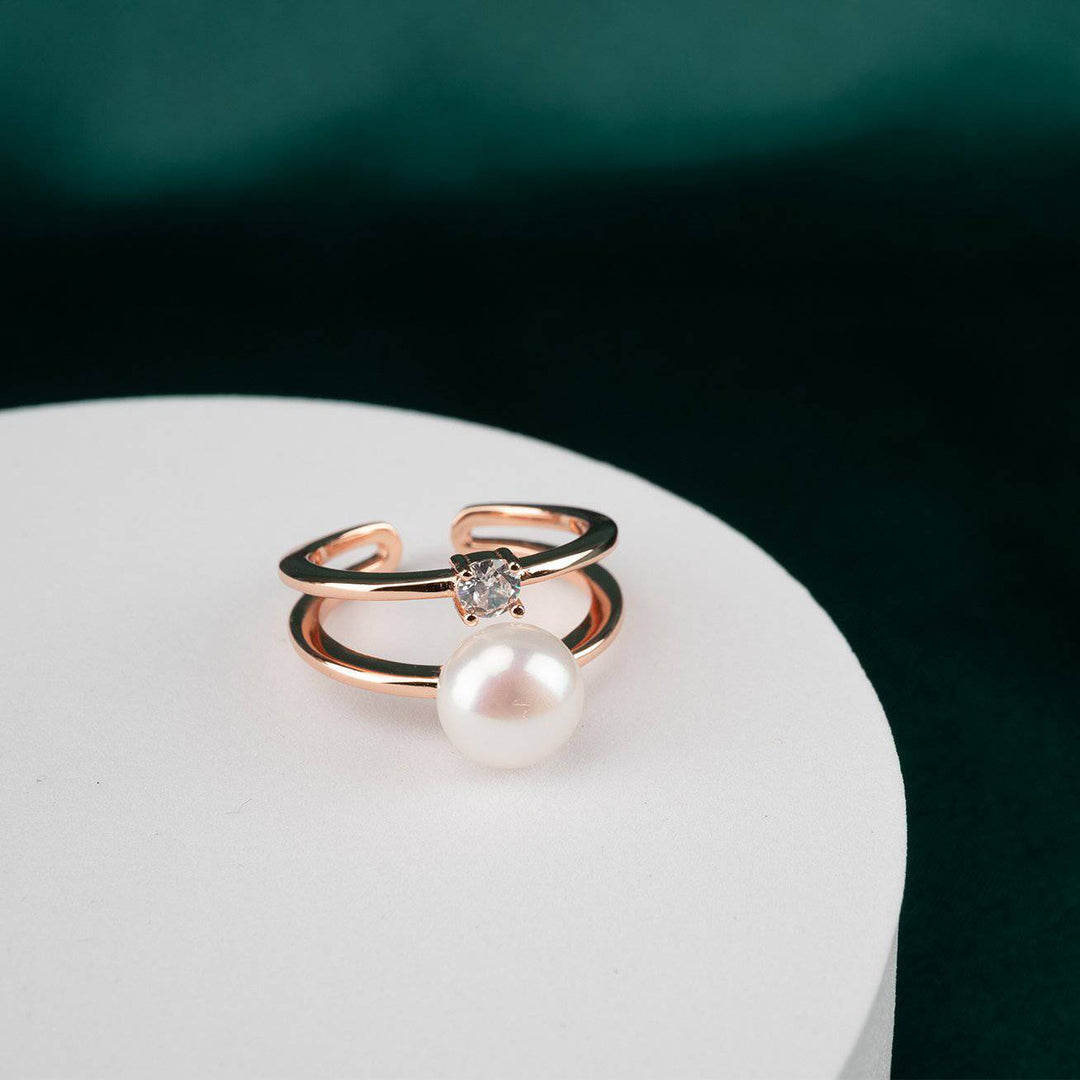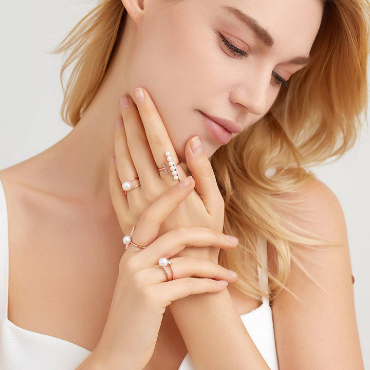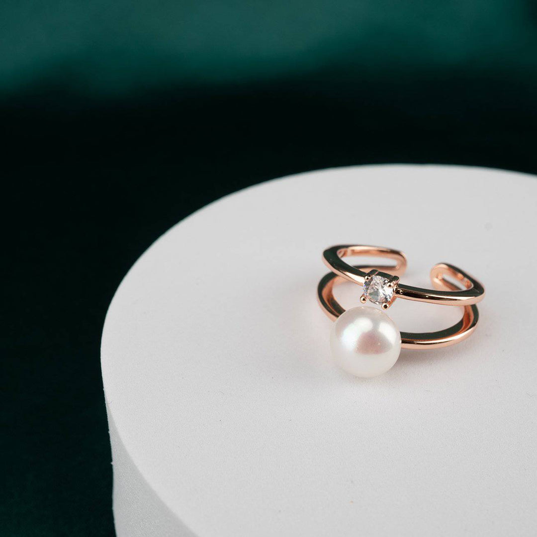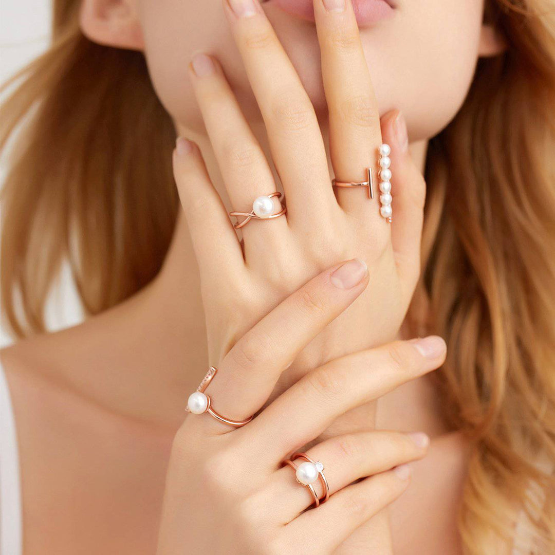 個性的で大胆、現代的なデザインのパールリングは、豪華さと愛らしさを表現します。スマートでスタイリッシュな特別な日のリングです。