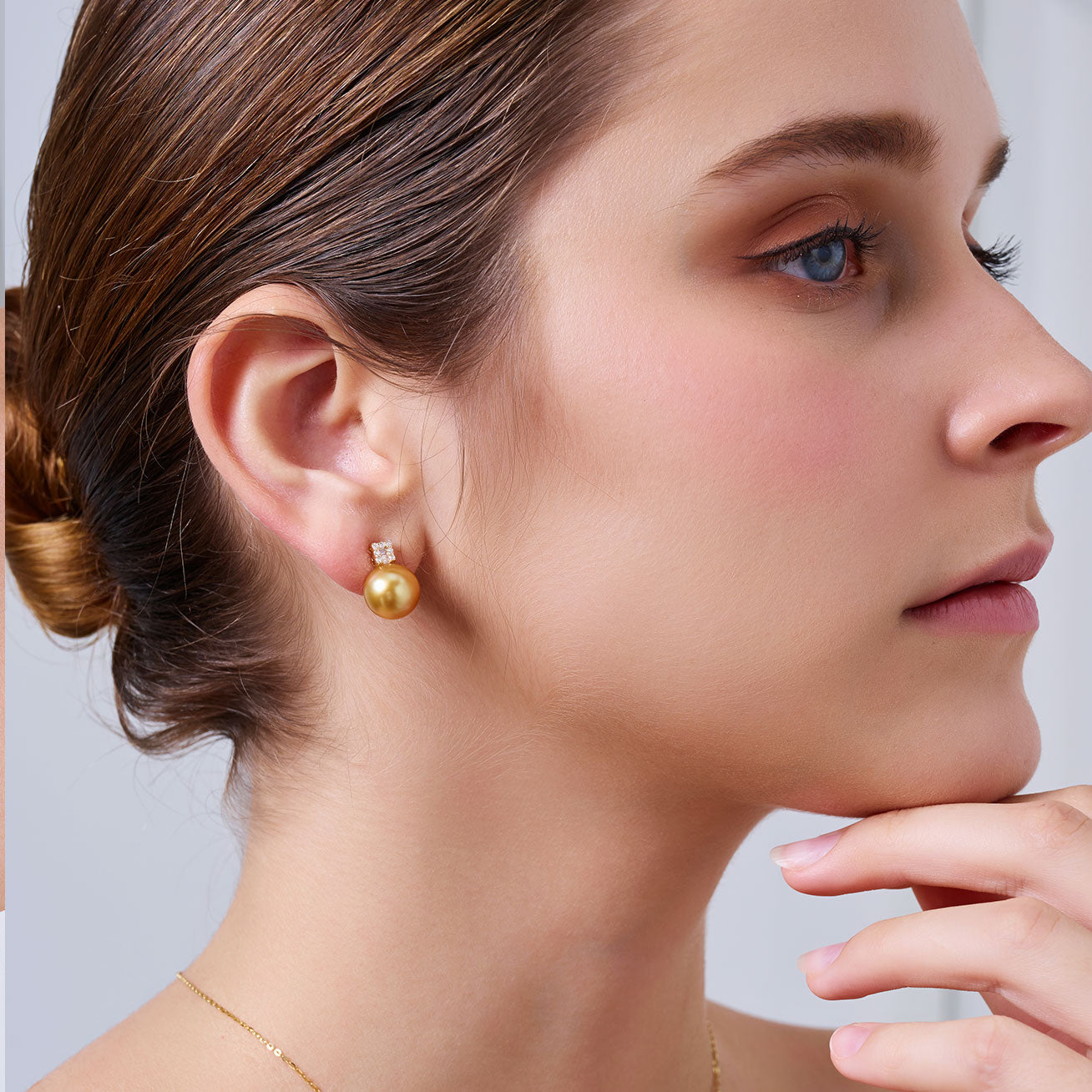 18K Solid Gold South Sea Golden Pearl Stud Earrings KE00293 - PEARLY LUSTRE