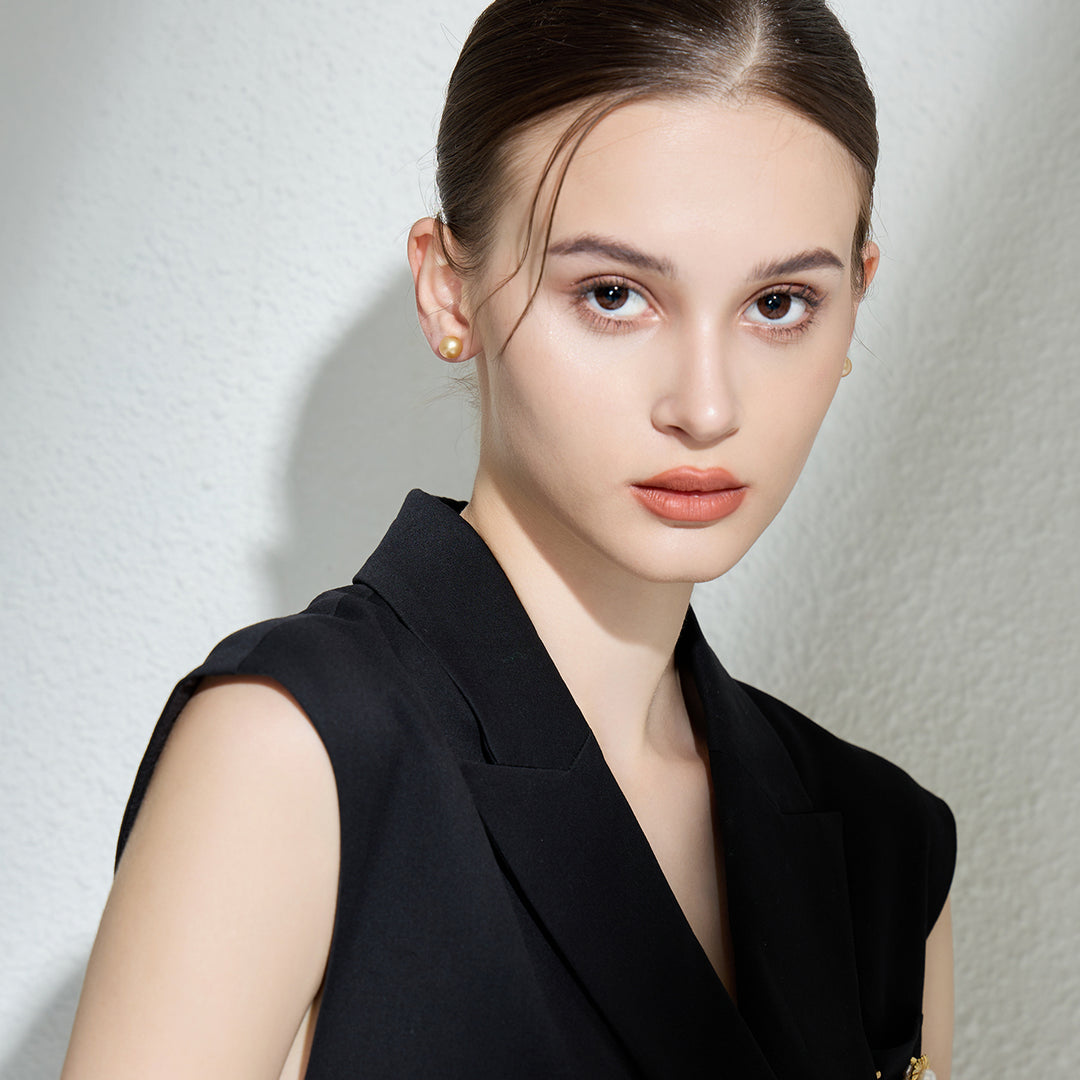 Elegant 18K Solid Top Grade Gold South Sea Golden Pearl Stud Earrings KE00014 - PEARLY LUSTRE