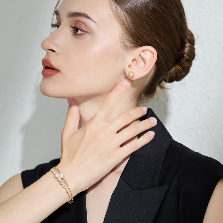 18K ソリッド トップグレード ゴールド 南洋ゴールデン パール スタッド ピアス KE00213