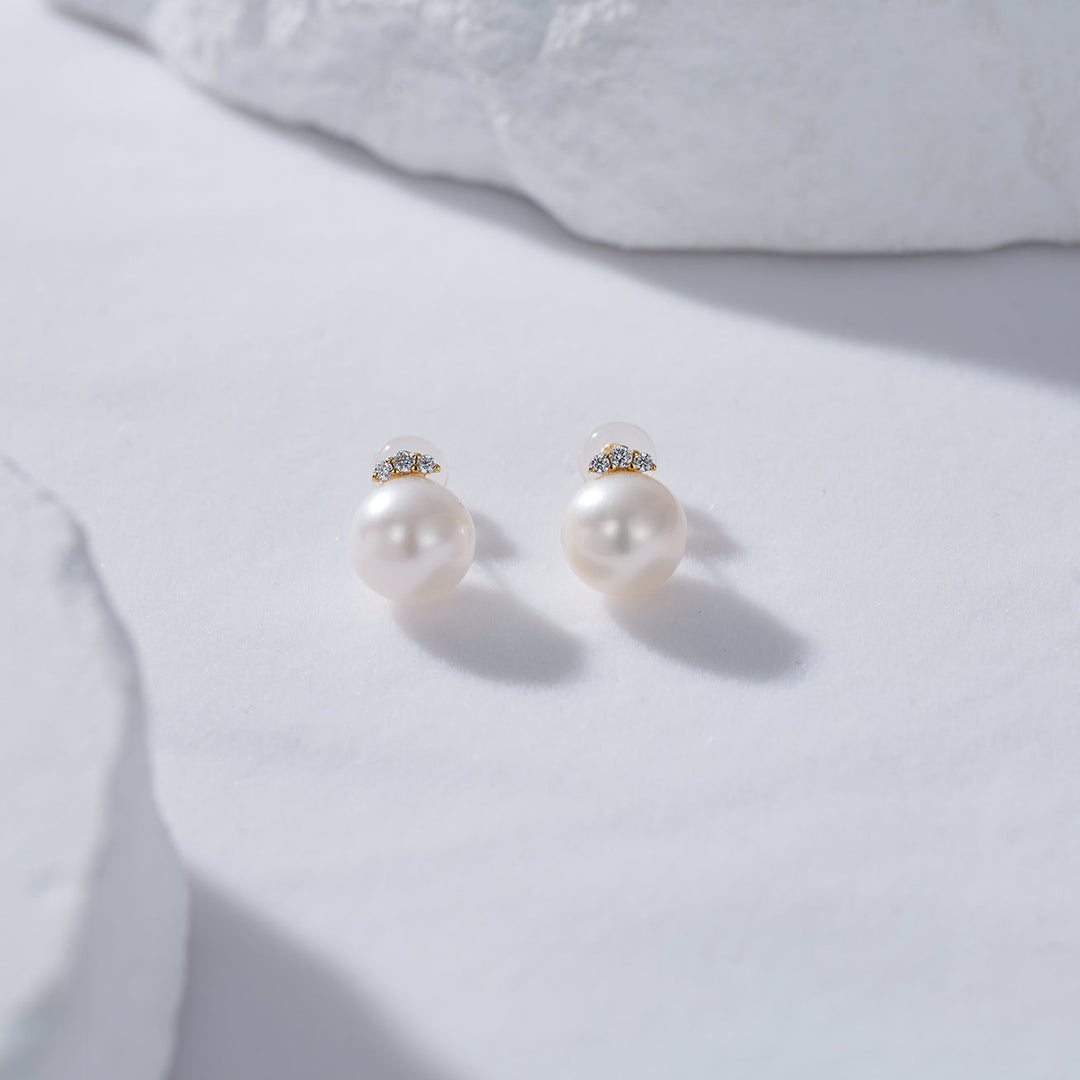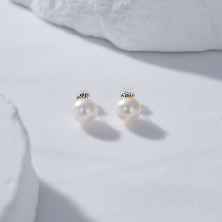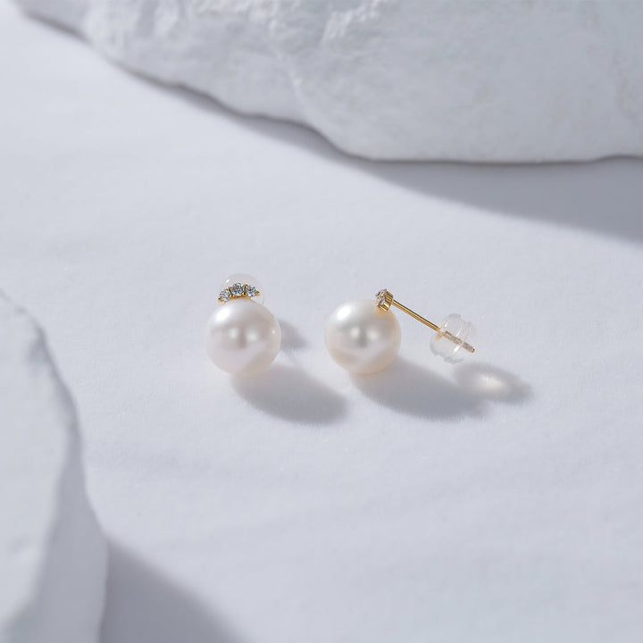 18K Solid Gold Top Grading Freshwater Pearl Earrings KE00172 - PEARLY LUSTRE