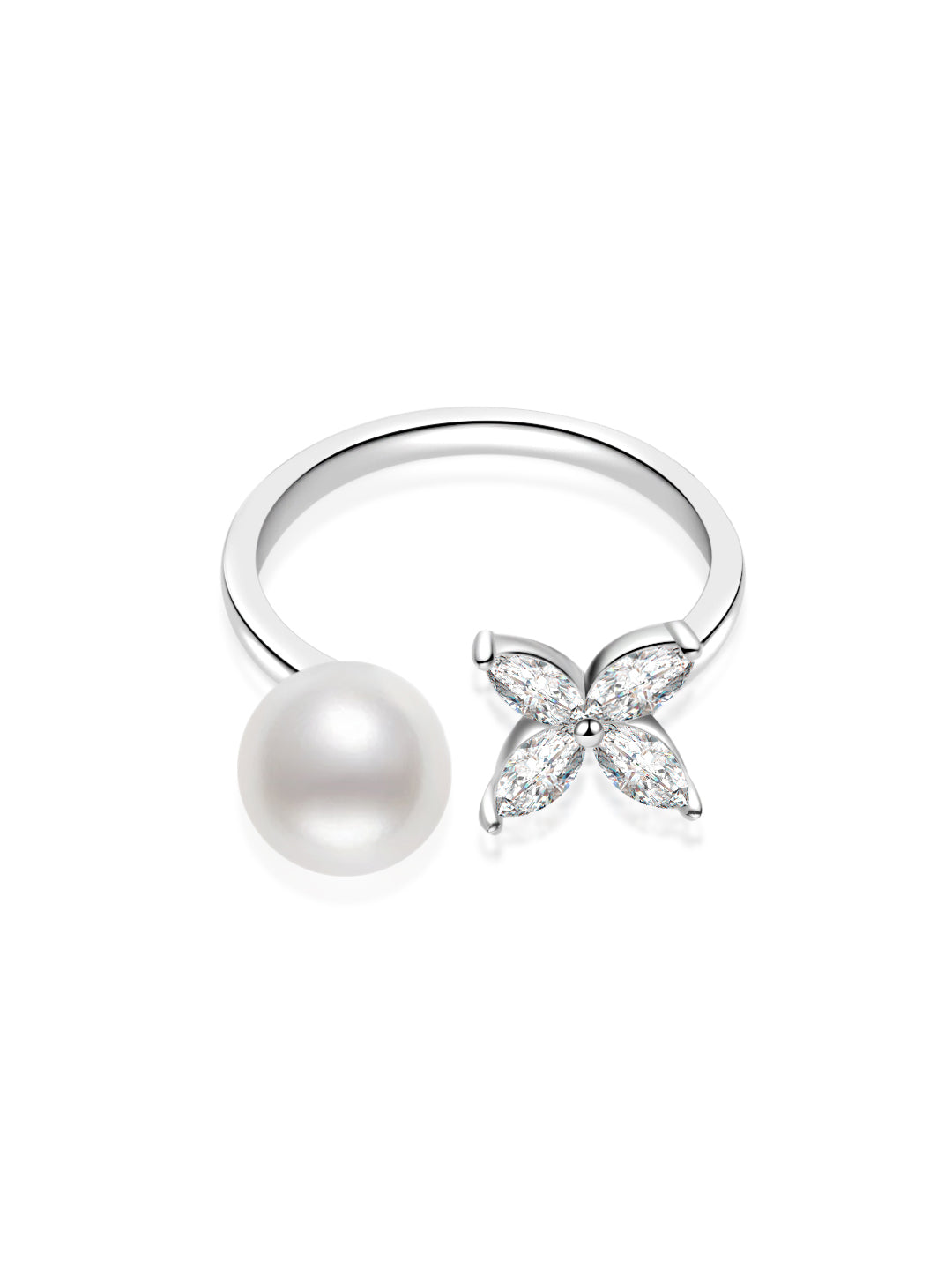 매혹적이고 우아한 이 백금 아코야 하나다마 진주 반지는 다이아몬드가 더해져 일상 복장에 세련된 멋을 더해줍니다.