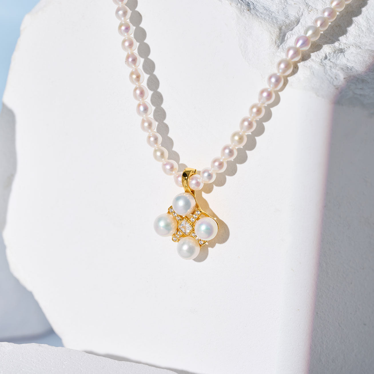 최고 광택 흰색 담수 진주 목걸이 WN00770 | PERANAKAN