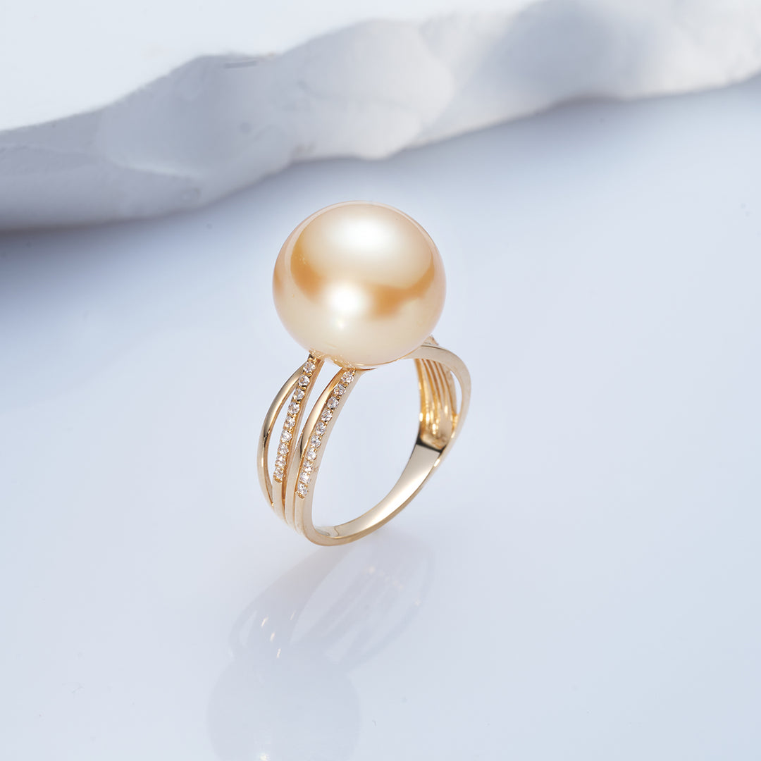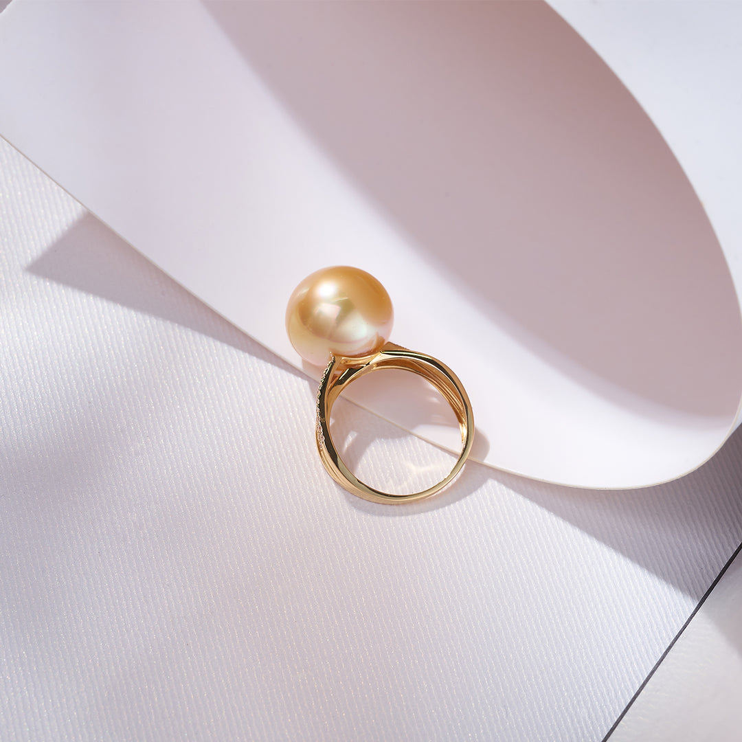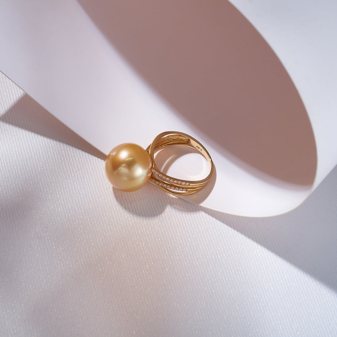 18K Solid Gold South sea Golden Pearl Ring KR00090 - PEARLY LUSTRE