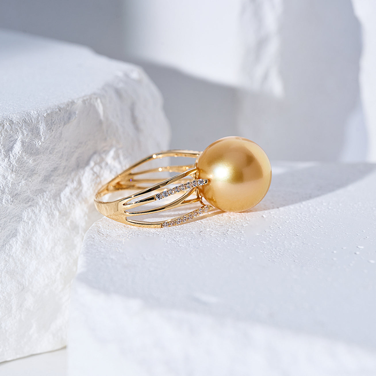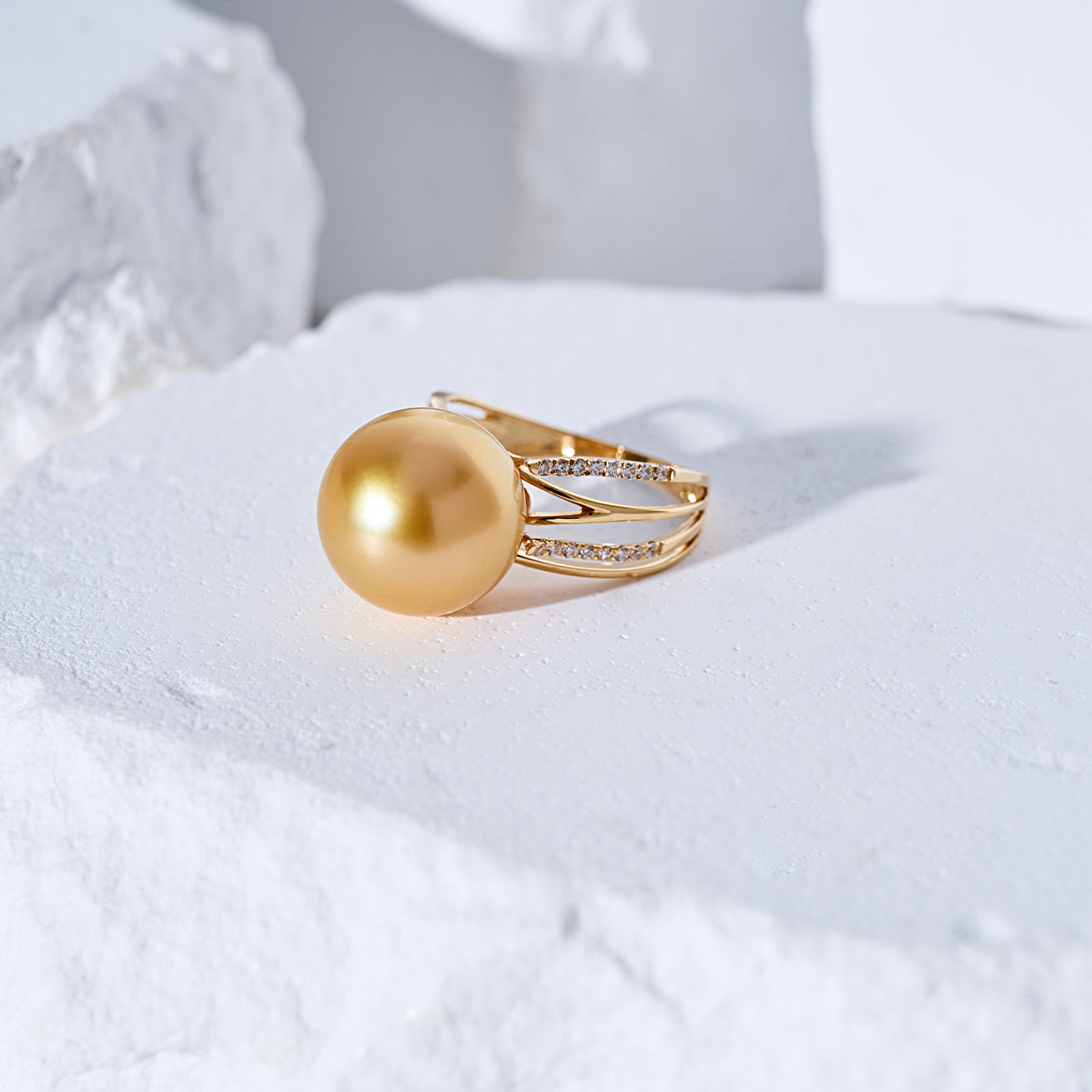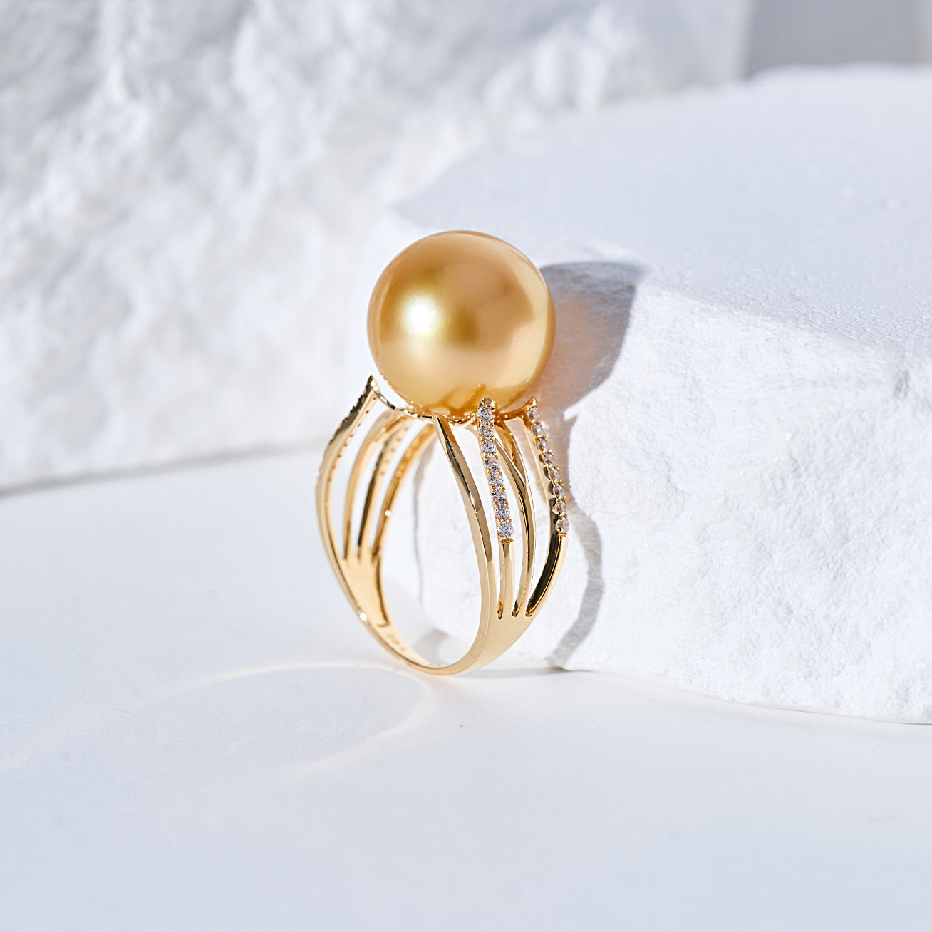 18K Solid Gold South sea Golden Pearl Ring KR00090 - PEARLY LUSTRE