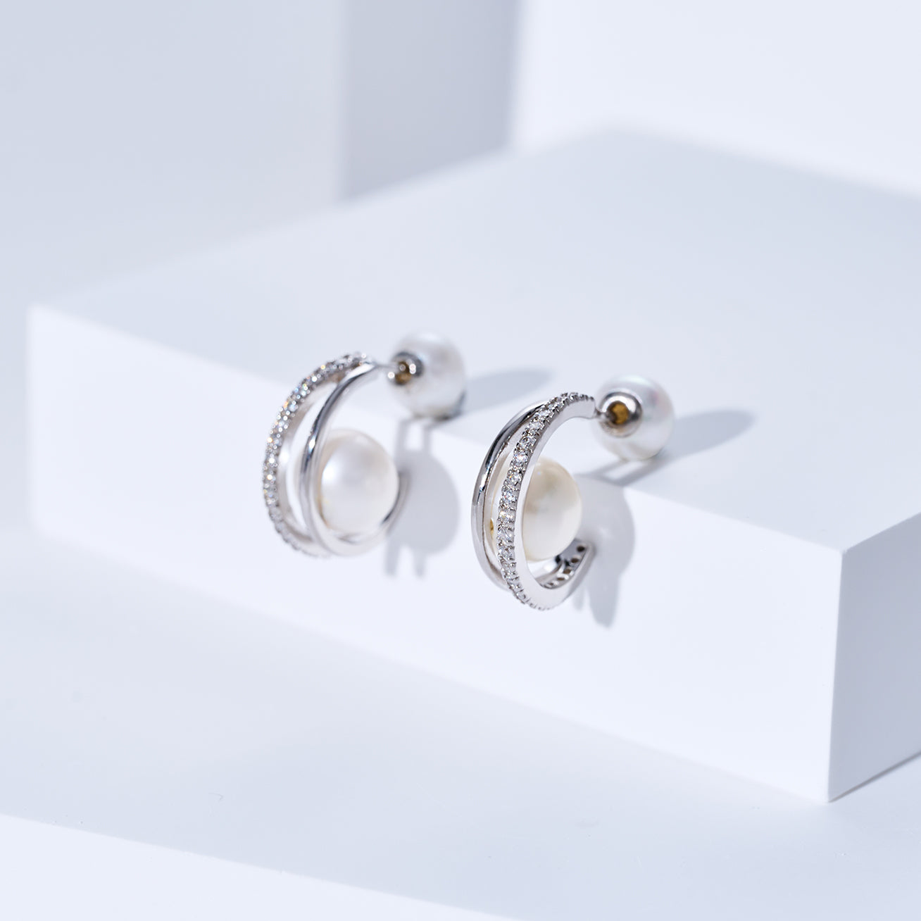 세련된 진주 귀걸이, 독특한 디자인.