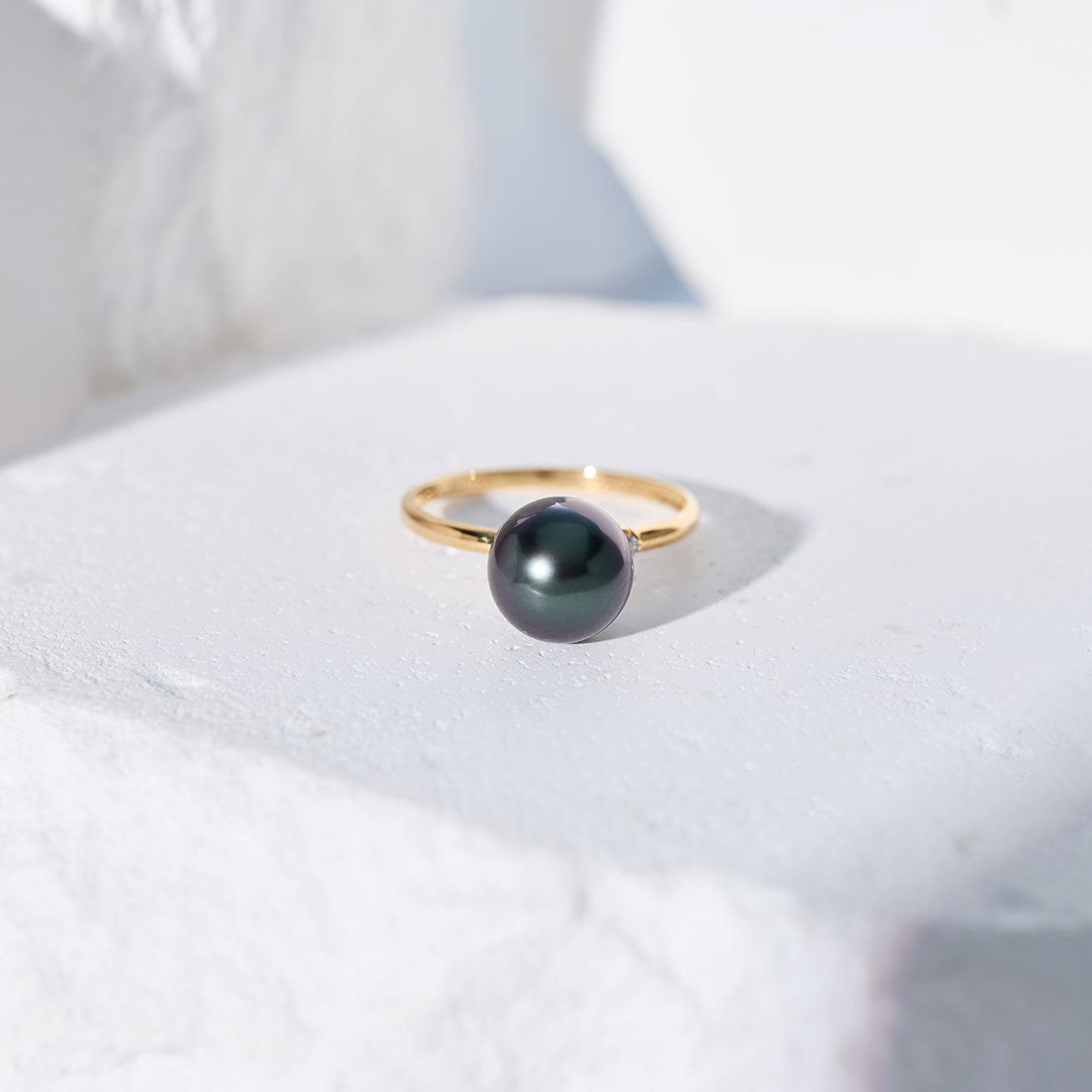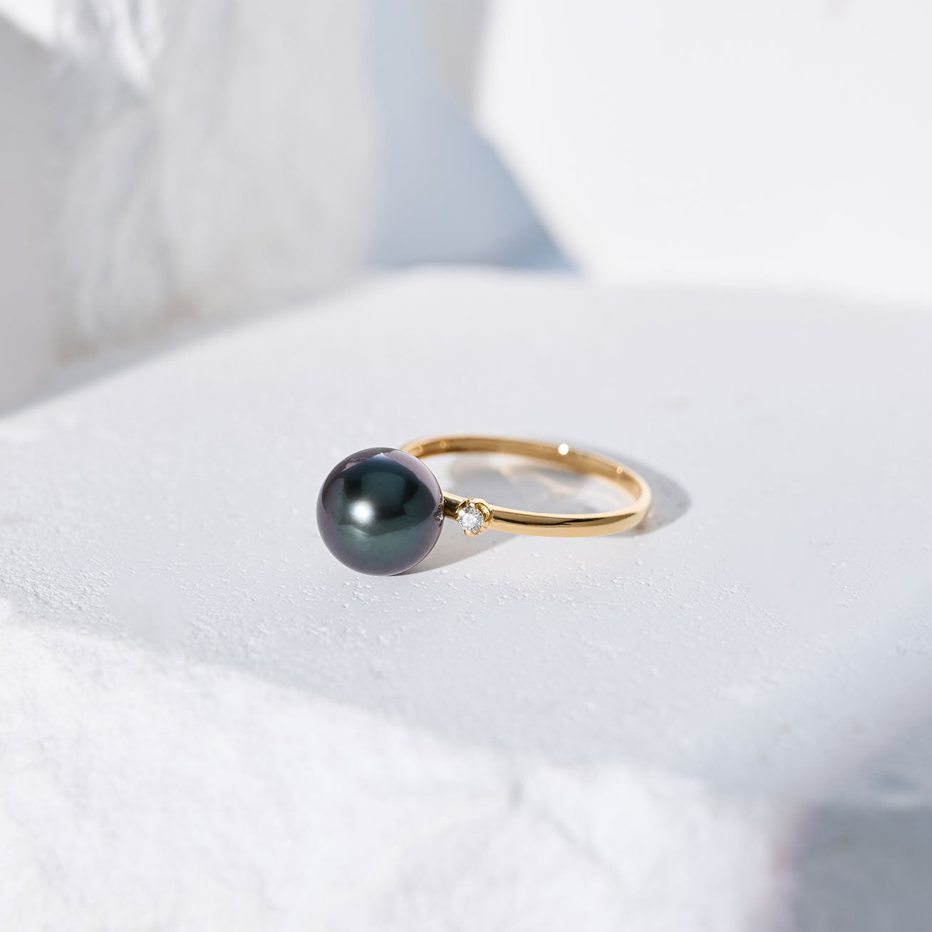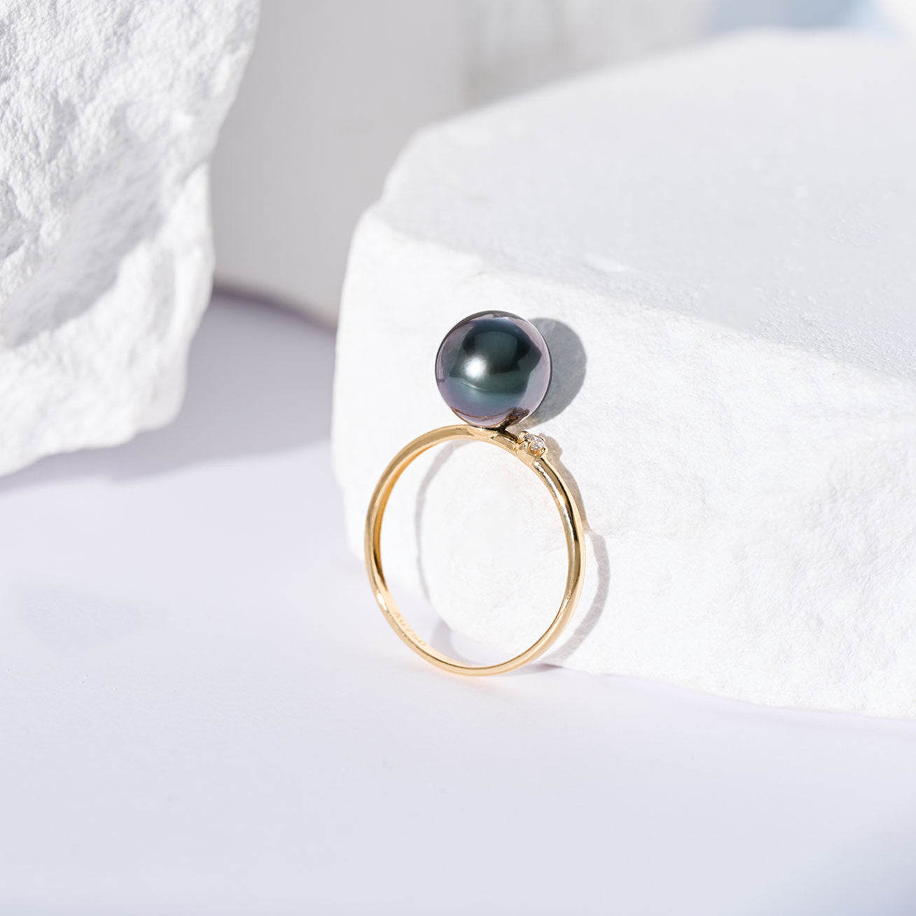 18K 솔리드 골드 다이아몬드 타히티 진주 반지 KR00148