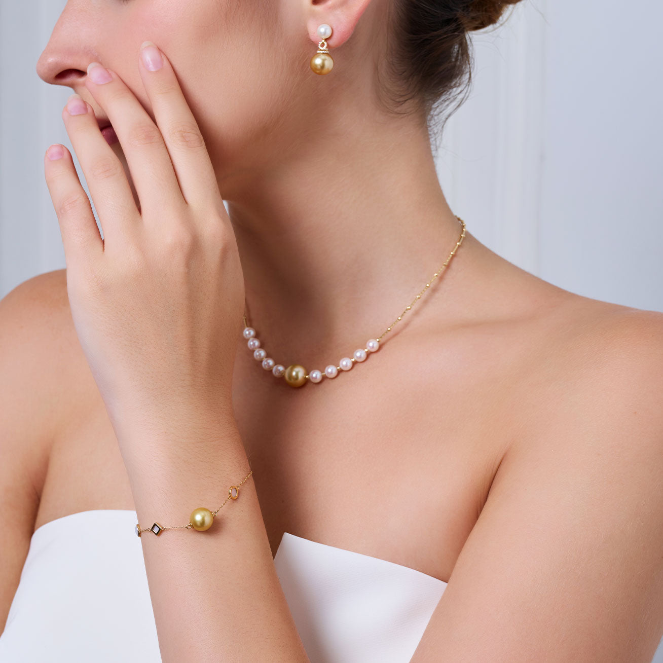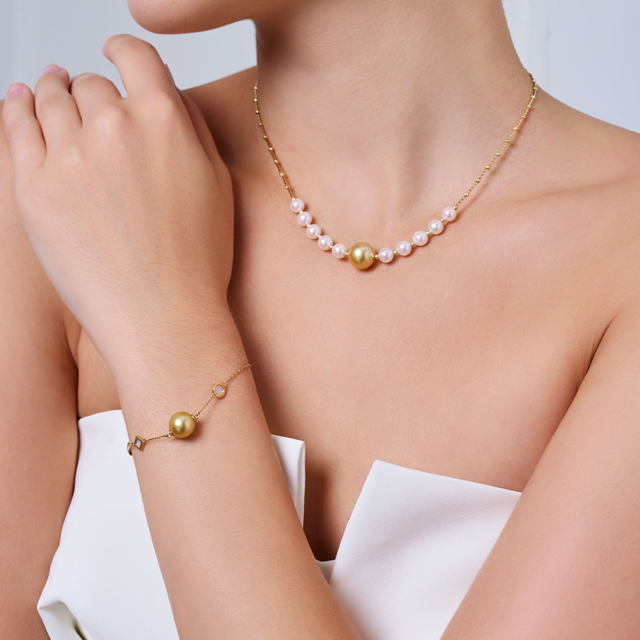 18K Solid Gold Golden South Sea Pearl Bracelet KB00066 - PEARLY LUSTRE