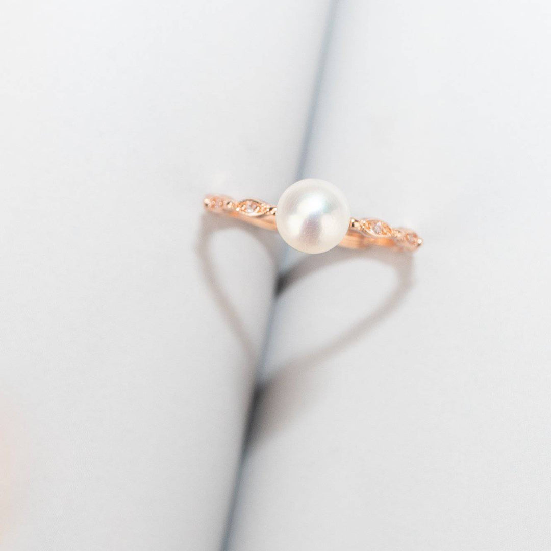 이것은 진주 반지로 특별한 차별성이 있습니다. 섬세하면서도 품위가 있으며, 현대적이고 세련됩니다. 우리는 디자인을 사랑합니다. 스털링 실버와 큐빅 지르코니아가 엮인 형태로 중앙에 진주가 있습니다. 순수한 품격, 영원의 반지입니다.